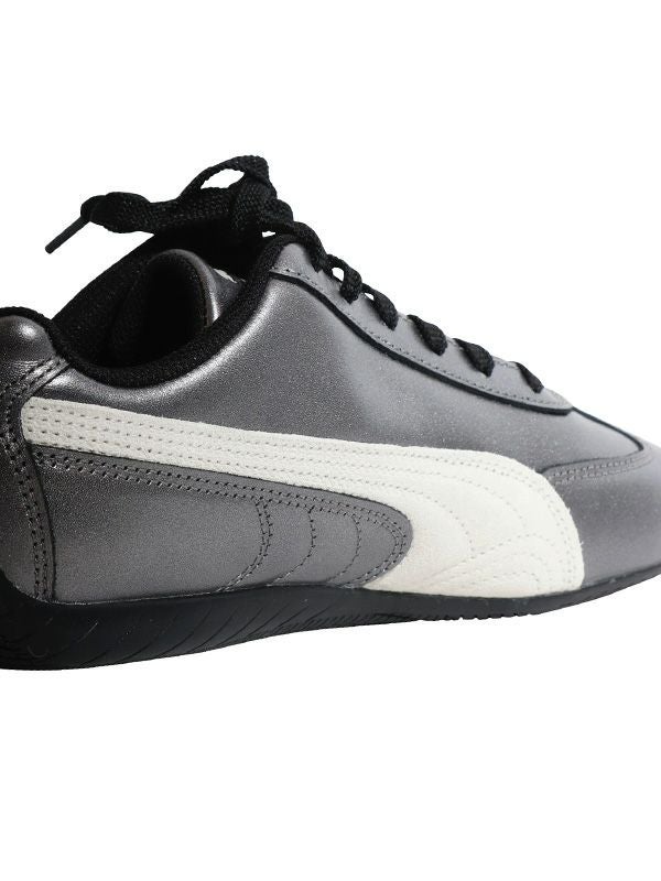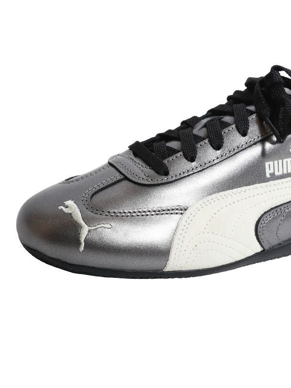 数ミリ秒のラップタイム短縮を追求して誕生した、伝説的ドライビングシューズ「スピードキャット」。そのシャープなシルエットと高い機能性は、サーキットだけでなく、ストリートでも圧倒的な存在感を放ちます。誕生以来20年以上にわたり、世界のファッション中心地で支持され続け、ストリートウェアとレーシングカルチャーの象徴的なアイテムとして愛されてきたSpeedcat。今なお、ファッションとカルチャーの融合を体感できる一足です。デザイン面では、メタリックルックのアッパーが洗練された印象を与え、ラウンドトゥのつま先とフラットヒールが快適な履き心地を実現。シューレース式のファスナーでしっかりとフィットし、レギュラーフィットの幅で日常使いにも最適です。