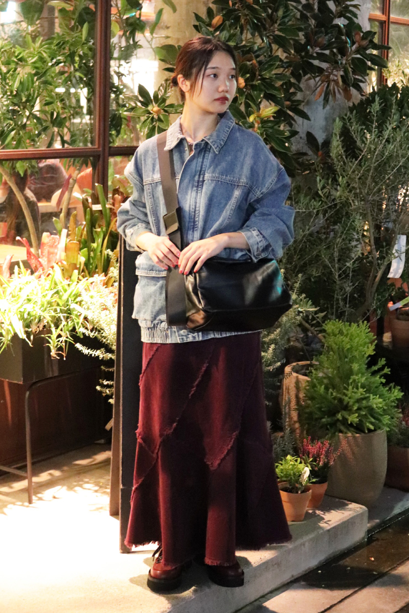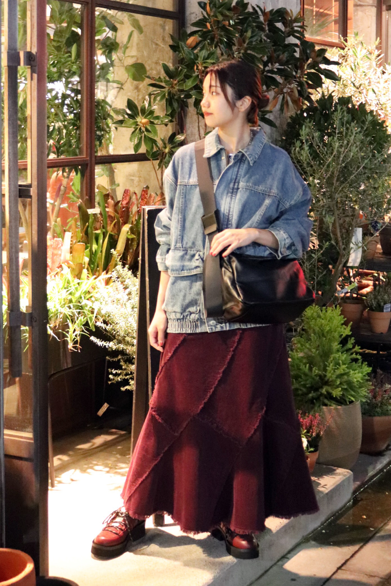 STYLING POINT武骨な印象のGジャンと優雅なロングスカート。ギャップが大きいほど「こなれ感」漂うコーデに着地。マニッシュなGジャンだと迫力も得られて◎