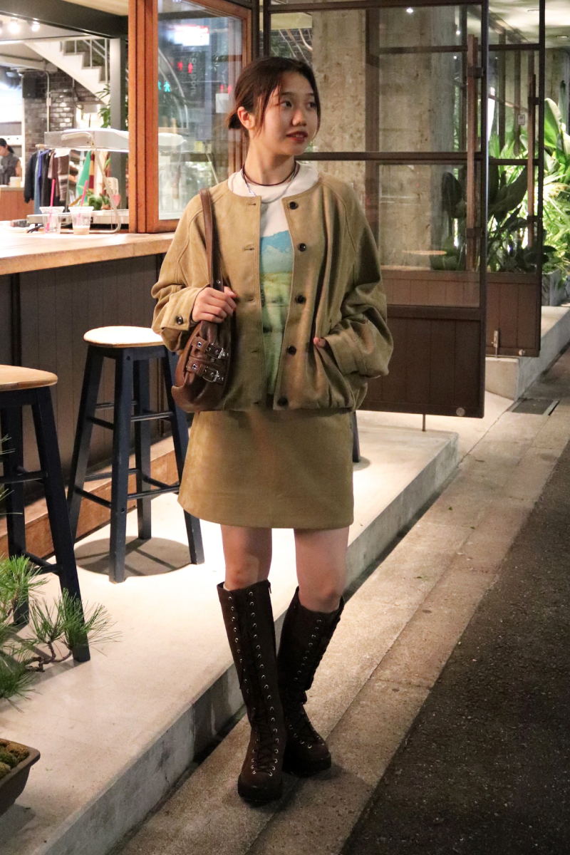 STYLING POINT短め丈の格上げを図れるスーツのようなセットづかい。気張って見えがちなセットアップもミニのおかげでカジュアルダウンが図れる嬉しい相乗効果。