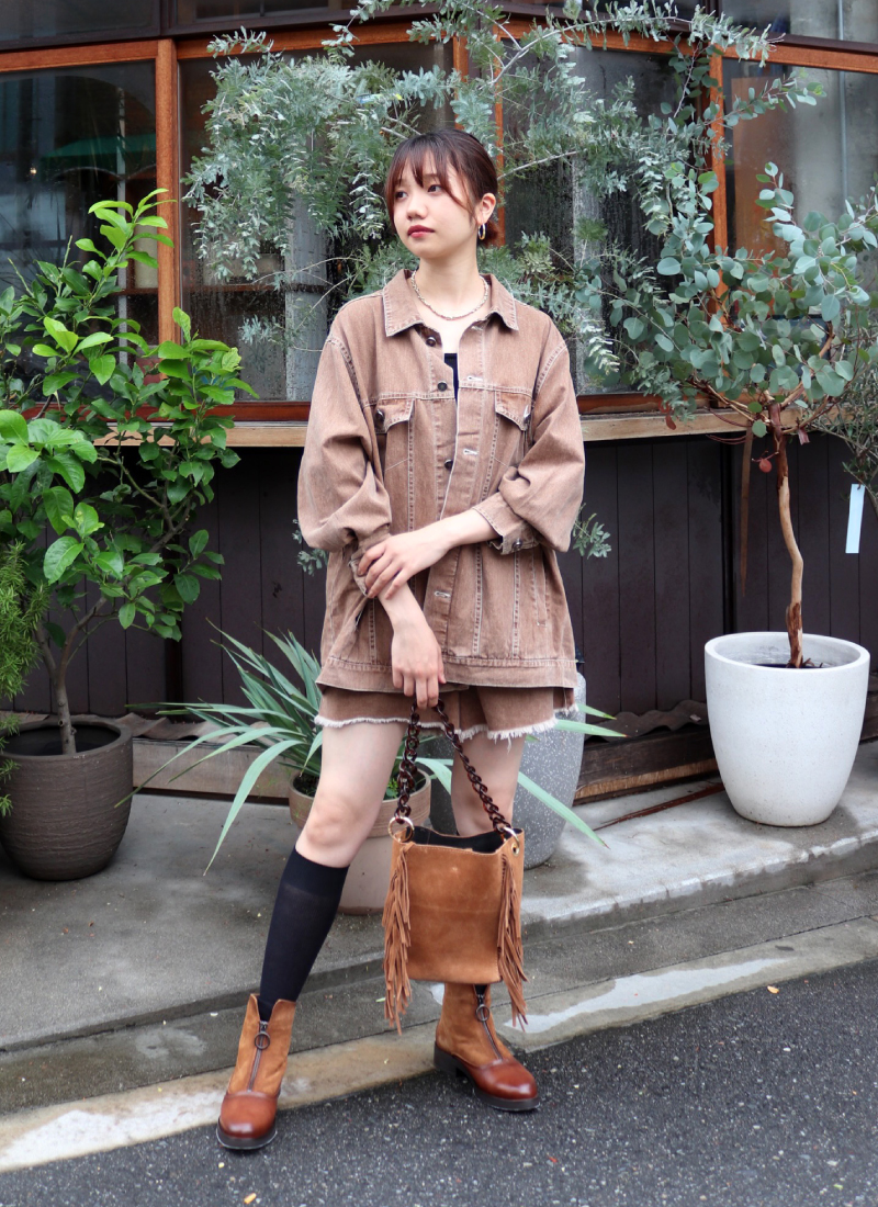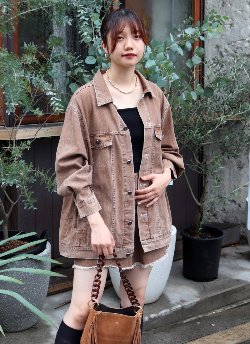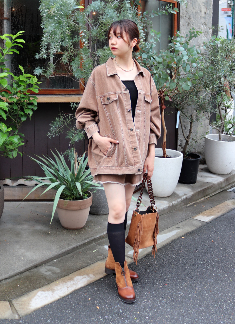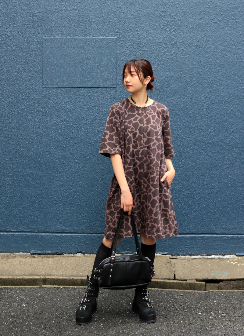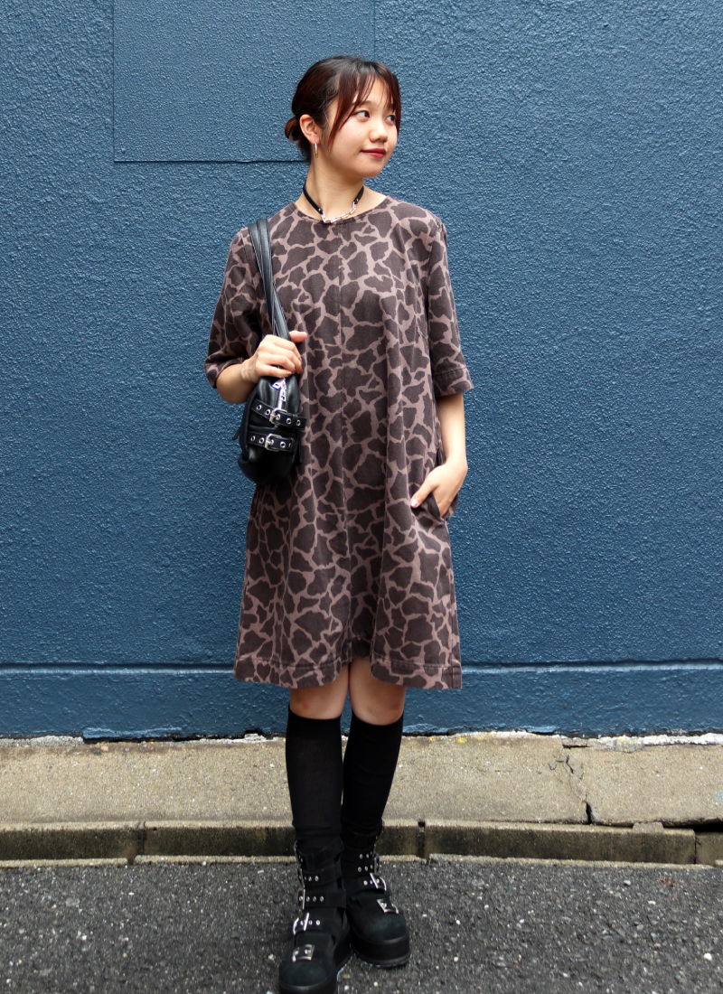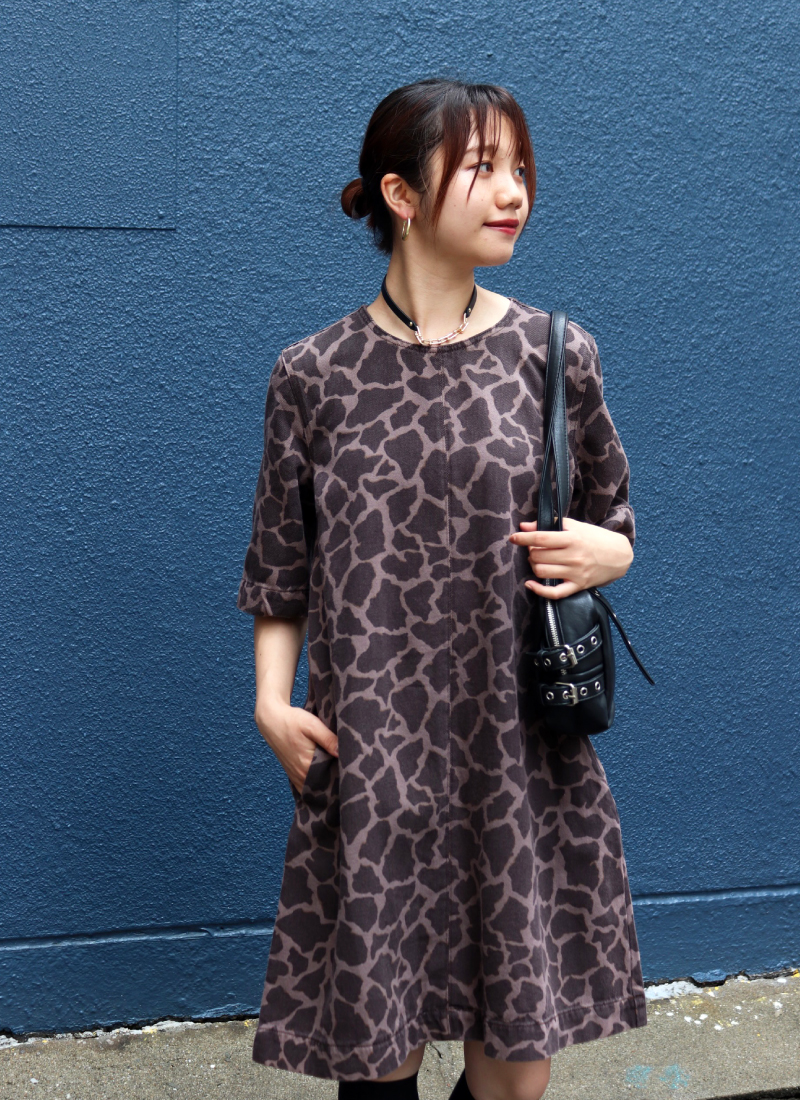 STYLING POINT迫力のあるジラフ柄をニュアンス感のあるブラウンカラーでシックに誘導。控えめなデザインとバランスのとりやすい着丈で意外にも馴染み良く合わせやすい。