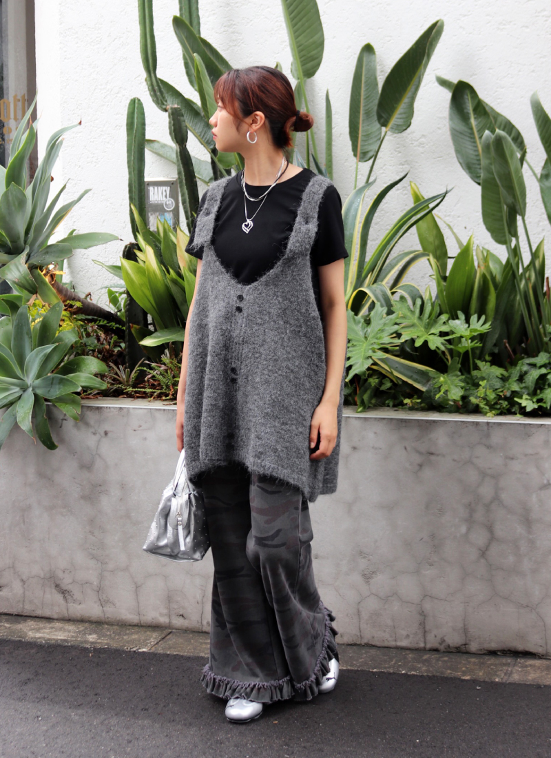 STYLING POINTストリートスナップから見つけたような遊び心のあるコーデ。アイコニックなデザインの迷彩柄でもモノトーンでまとめるとスタイリングの調和がとりやすい。