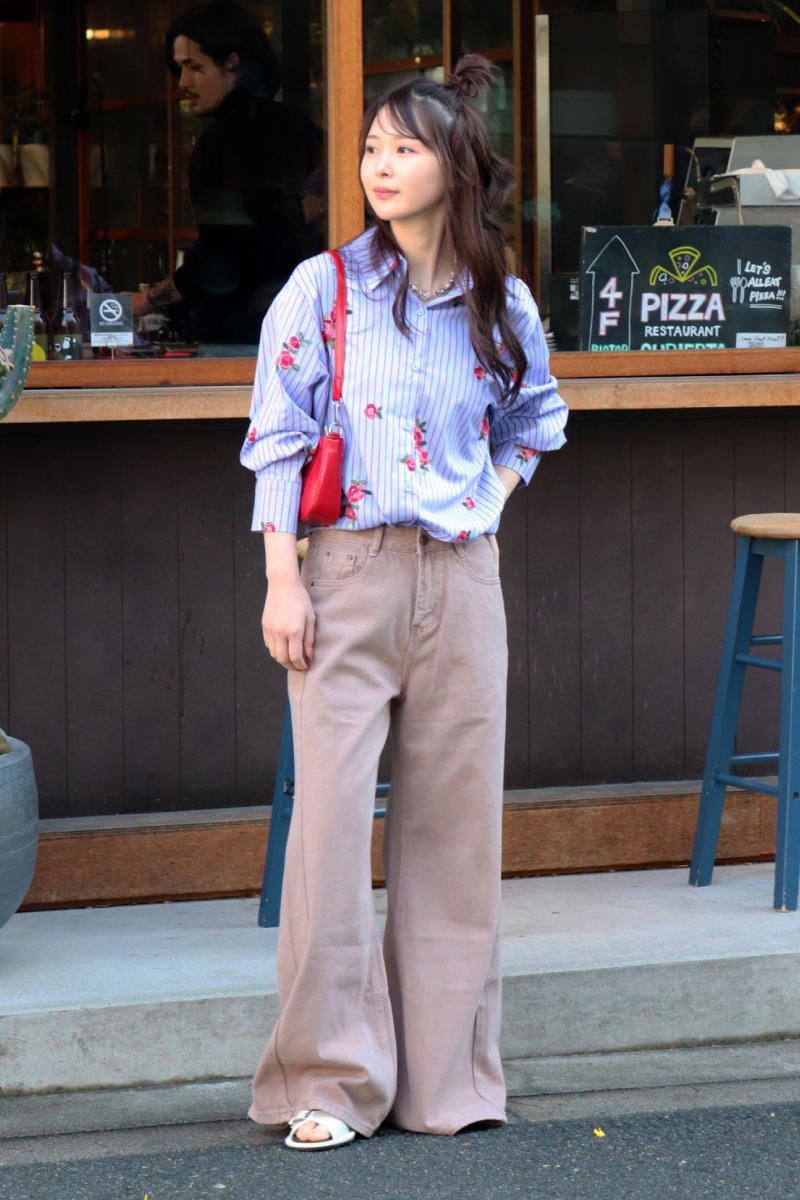 STYLING POINT色や柄の個性的なアイテムをナチュラルなカラートーンのデニムと合わせる。鮮度の高いバランスに仕上がる、おススメのスタイリング。
