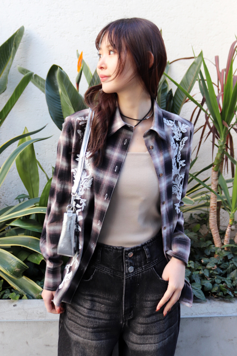 STYLING POINTカジュアルなチェックシャツも刺繍入りならヴィンテージ感も補完。デニムとの王道クラシカルな組合せにキチンと感は残しつつ、今らしい抜け感がでる。