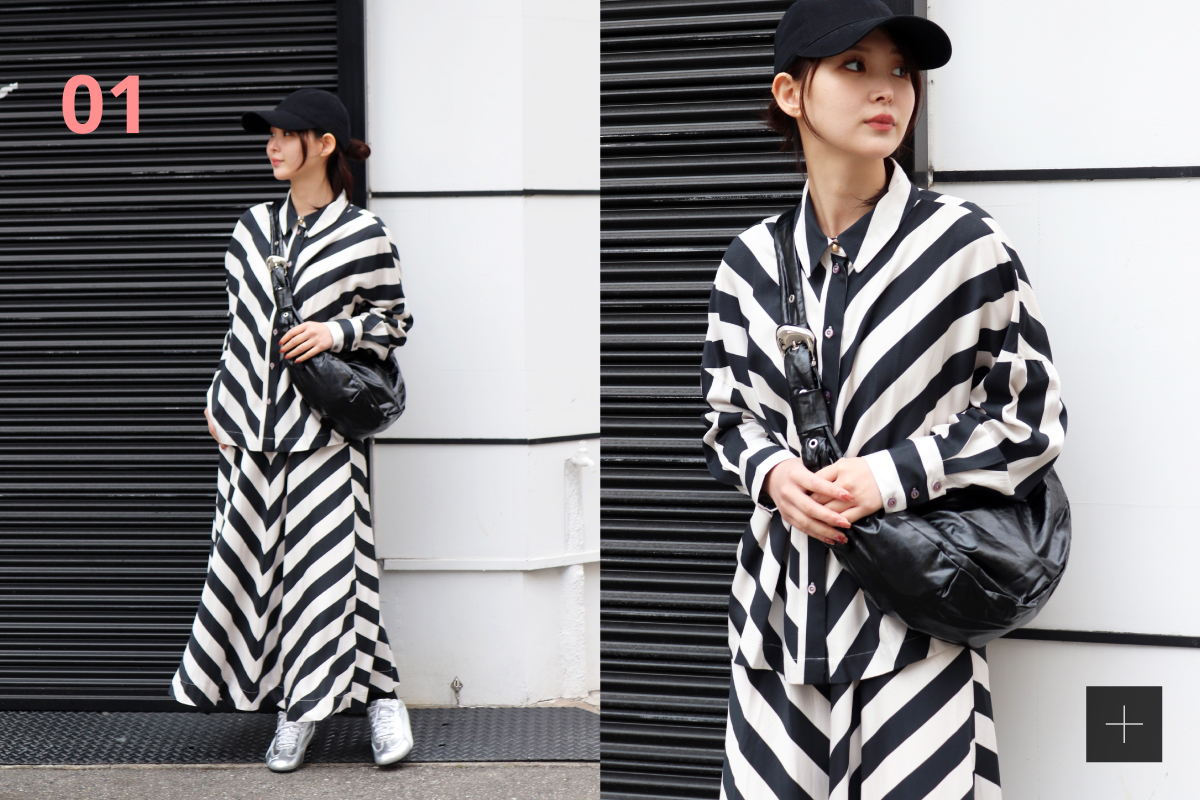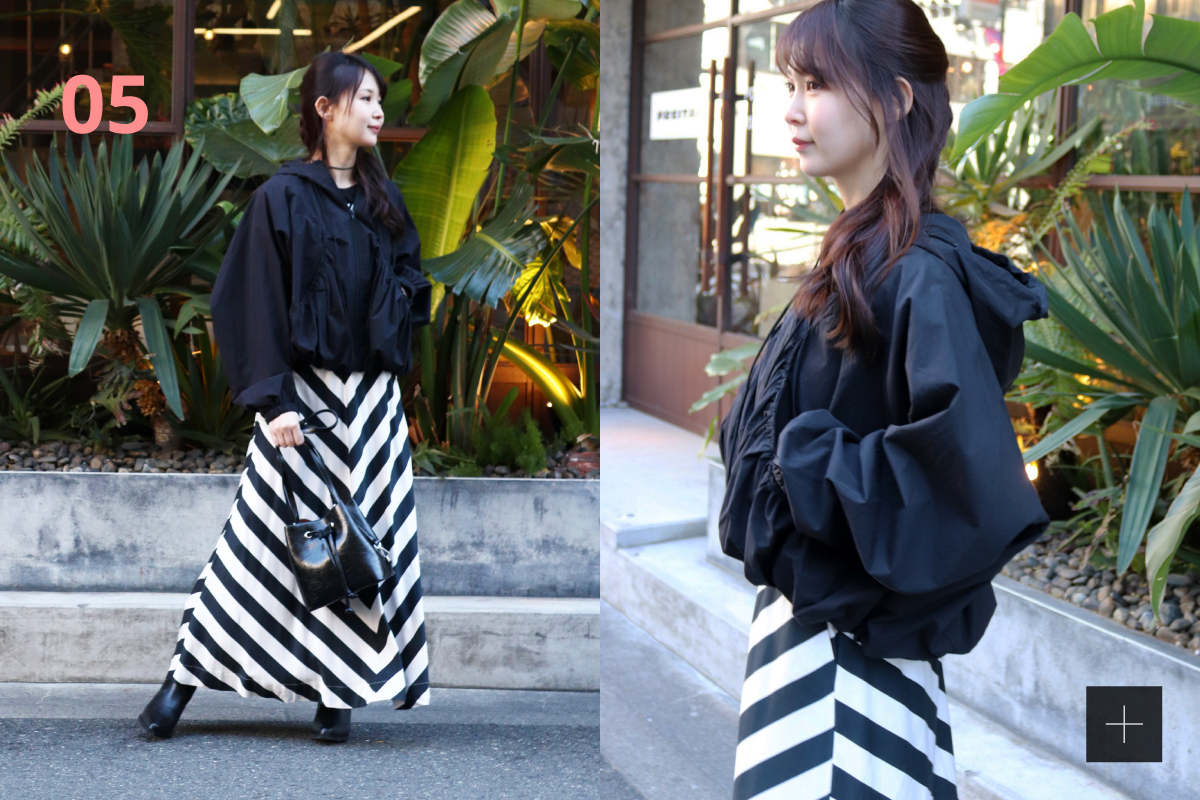 大人っぽいモノトーン配色がコンサバにもモードにもマッチしてくれます。