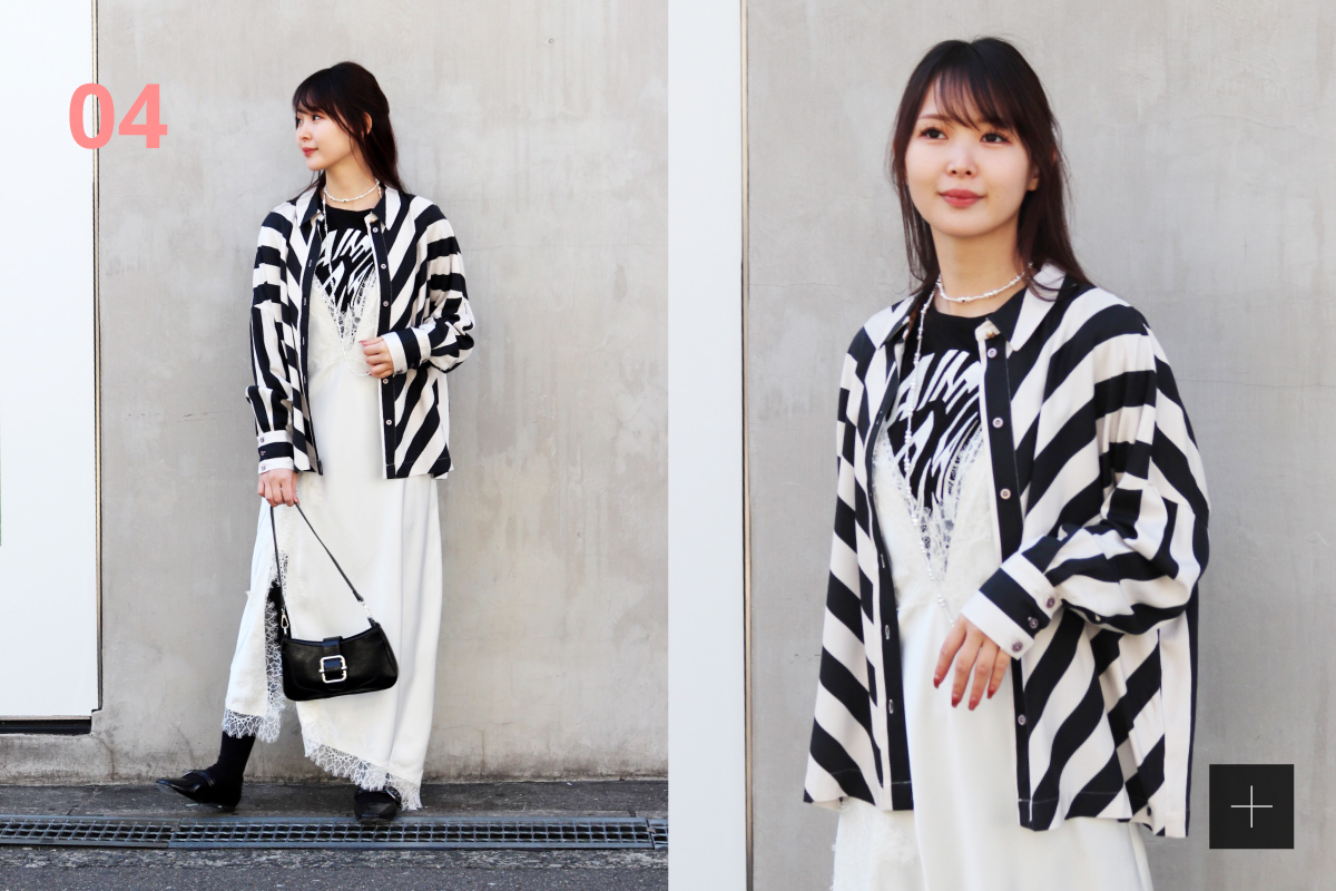 大人っぽいモノトーン配色がコンサバにもモードにもマッチしてくれます。そんな頼れる1枚の幅を広げるためコーディネートを考察。カジュアルに着てみたり、フェミニンにしたり、同じ服でも毎日違った装いを楽しめるスタイリングをご紹介!