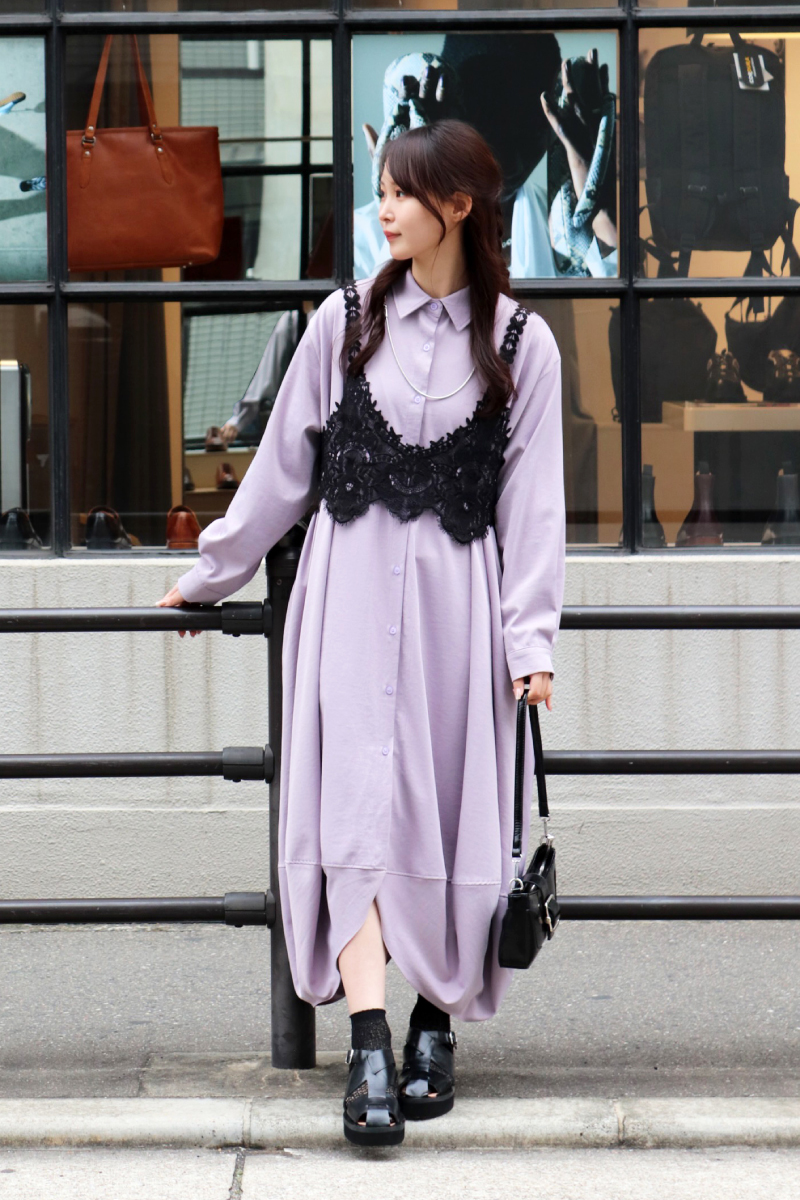 STYLING POINT大人気のバルーンワンピースを今年らしく着こなすなら、コルセットデザインのレーシーなアイテムをプラスしてレディに纏めるのもおススメ◎