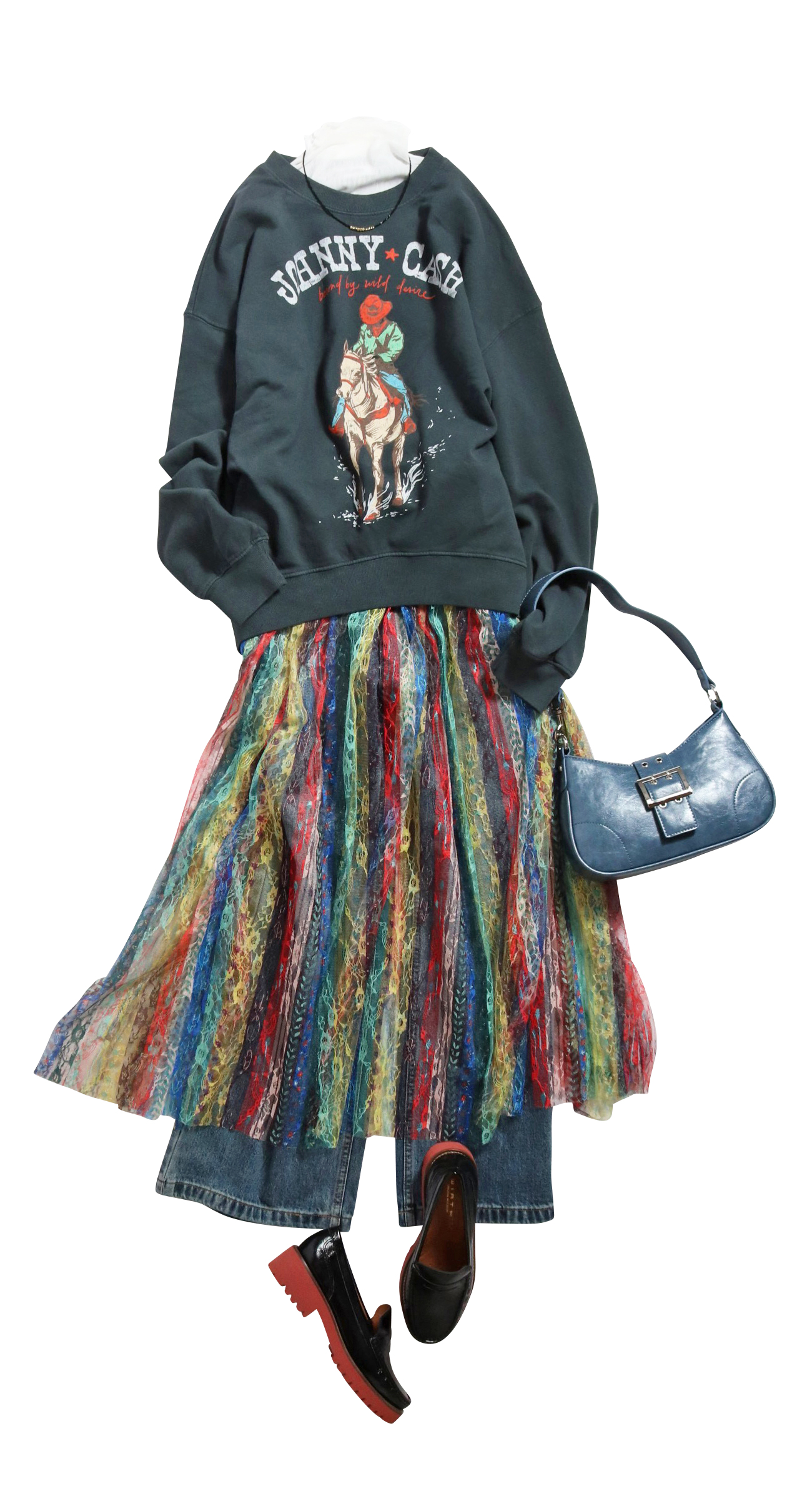 異素材MIXなキレイめモードなスタイルとラフなデニムで