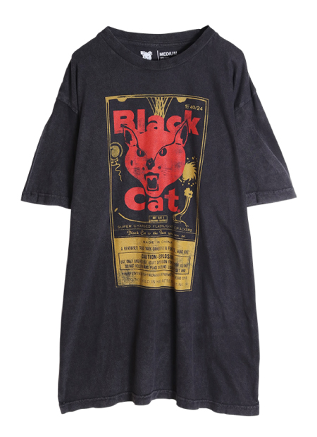 遊び心たっぷりのネコプリントとインパクトあるカラーリングのTシャツ。