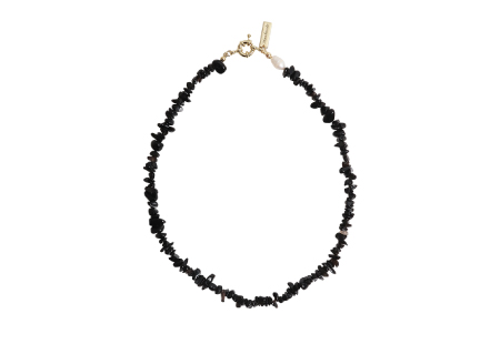 ほんのり透けてるレースの甘さを活かしつつブラックデニムでカジュアルダウン。小物でアクセントを効かせてクラスアップしたコーディネート。
