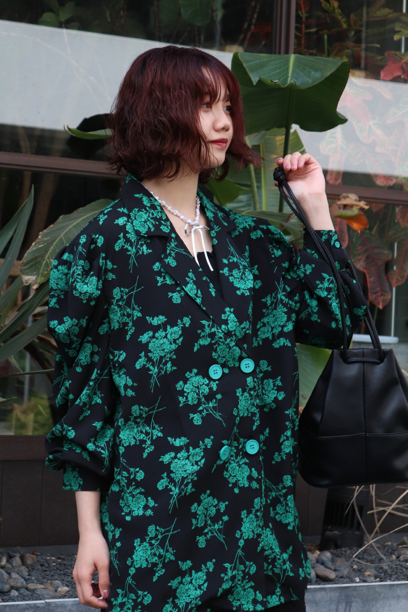 STYLING POINTコーディネートの主役になる花柄ジャケット。シンプルコーデに羽織るだけでスタイルが完成します。トレンドのミニボトムとも好相性。