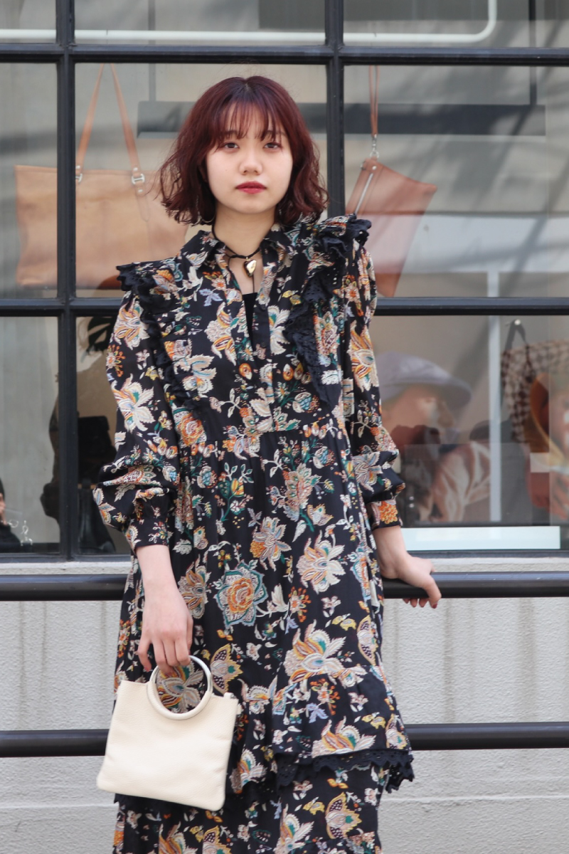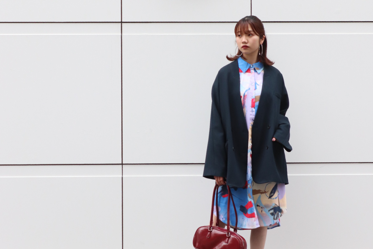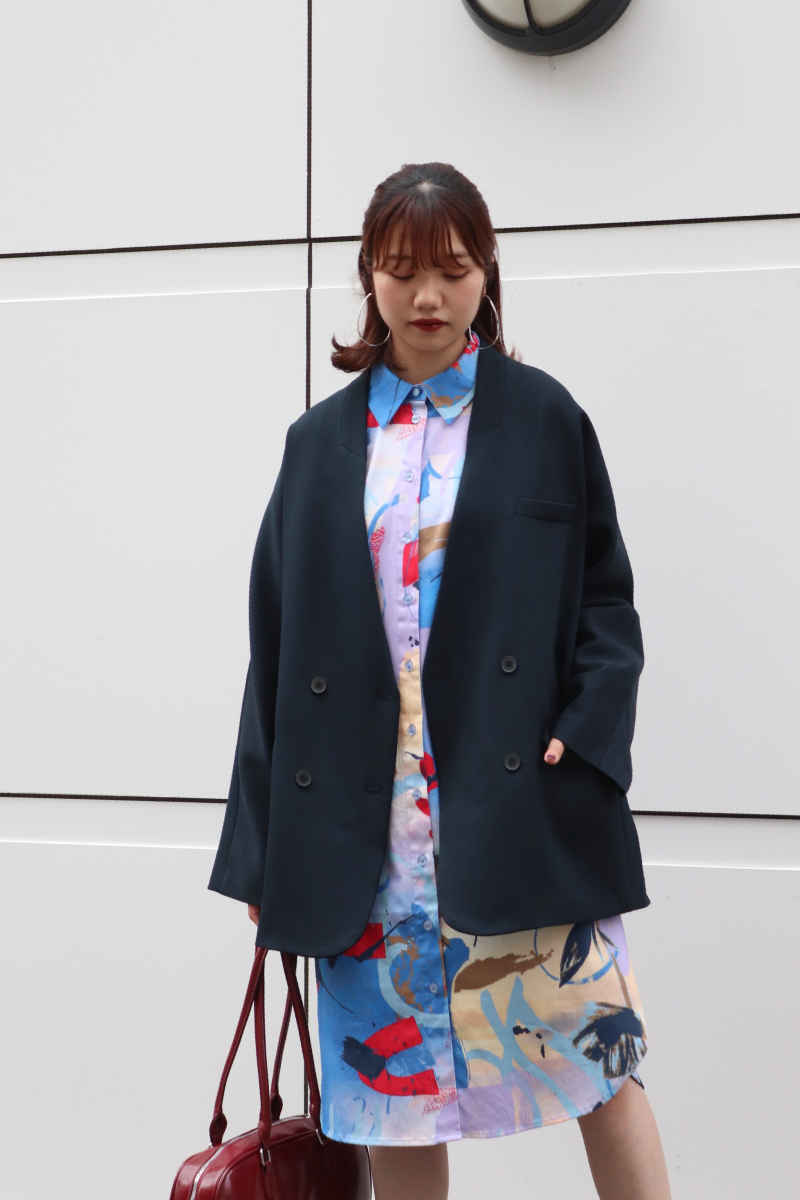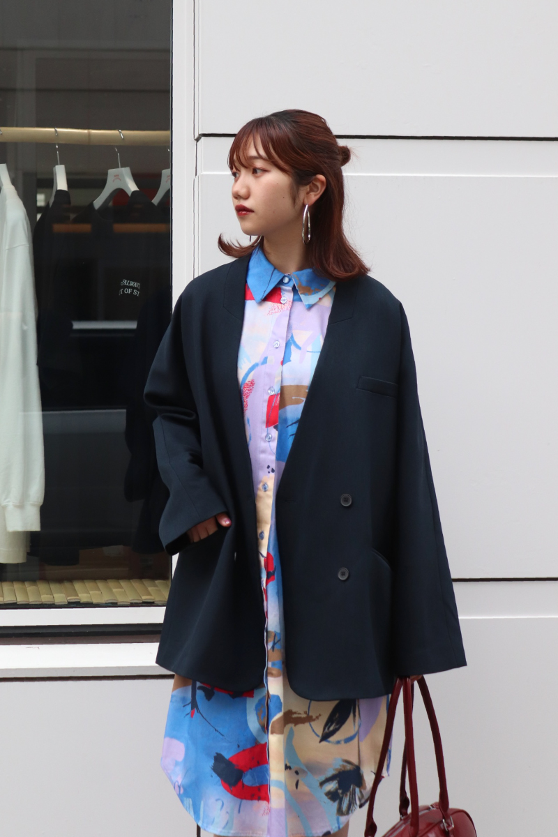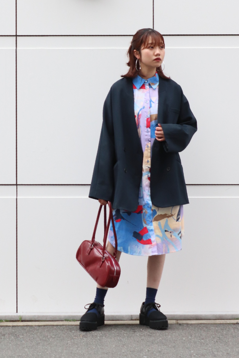 STYLING POINTシャツワンピとジャケットで上品にスタイリング。カッチリ同士のアイテムでも、とびきり可愛いプリントなら程よく力の抜けた仕上がりにシフト◎