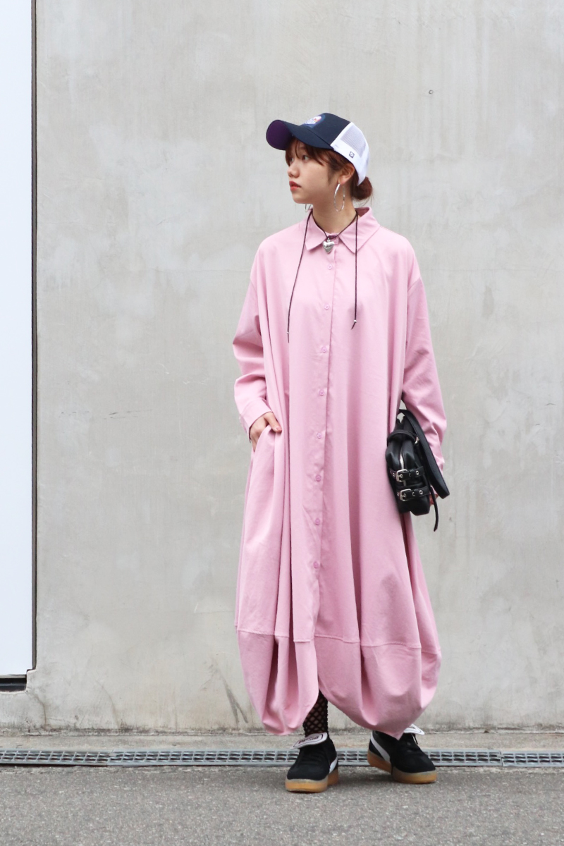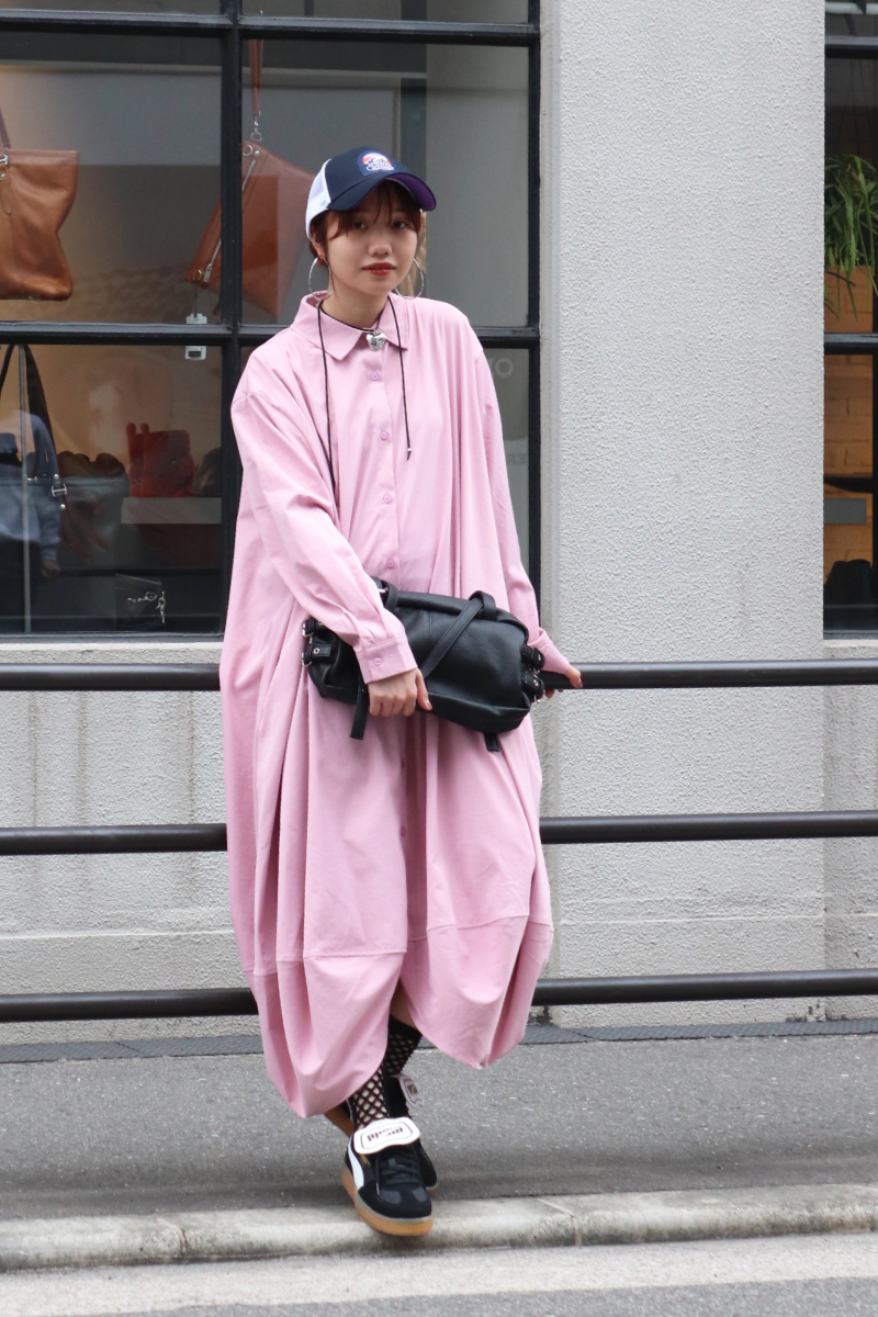 STYLING POINTバルーン特有のシルエットが印象的なワンピース。1枚でそのまま着られる気候だからこそ、ストリートに落し込んだ「いつでも・どこでも」スタイルに。