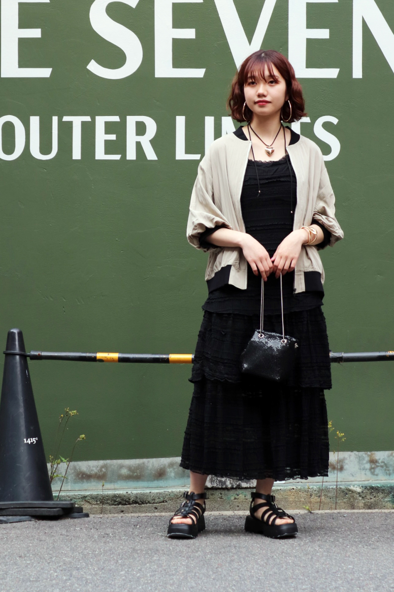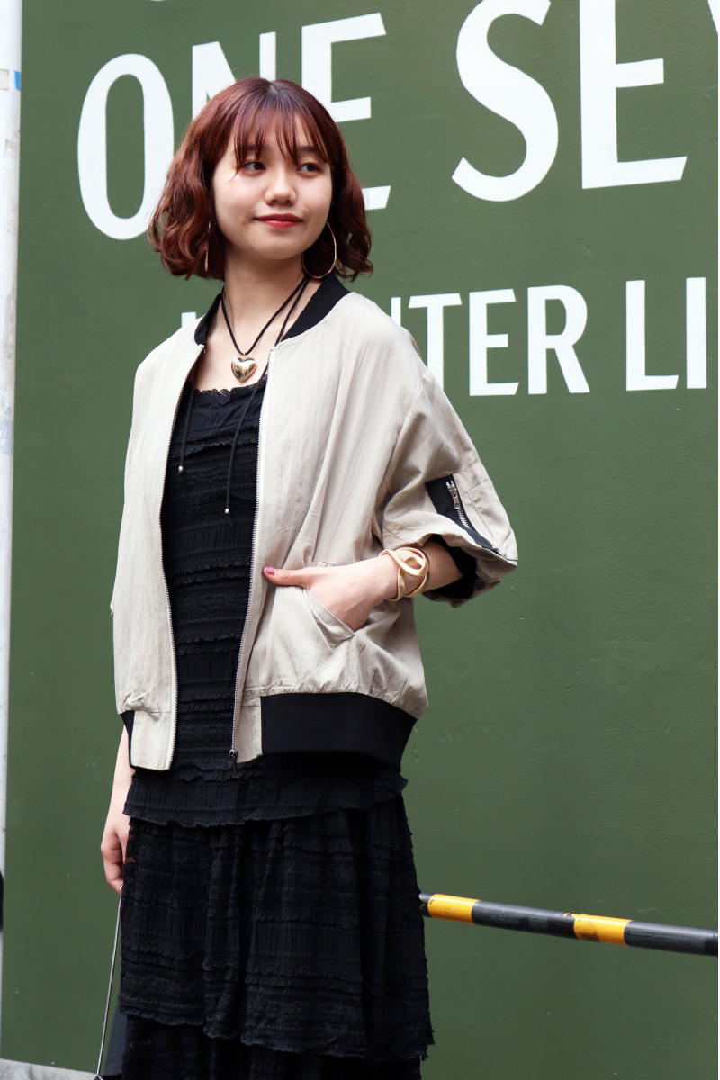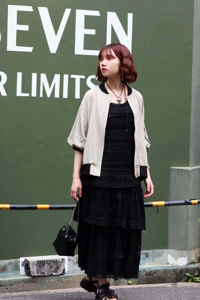 STYLING POINT1枚で着ると甘く仕上がるレーシーなキャミワンピにミリタリー調の羽織りをプラス。フェミニンなアイテムをキリッと引き締める好バランス。