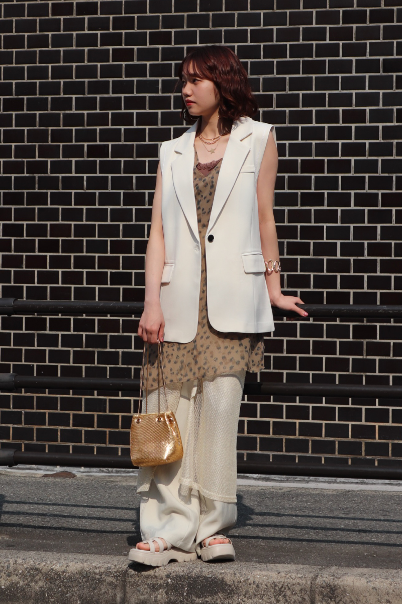 STYLING POINT透け感とフンワリ感のあるアイテムに、テーラードベストを羽織ってコーディネートにメリハリを出すと、シャープで大人っぽい雰囲気に着地◎。