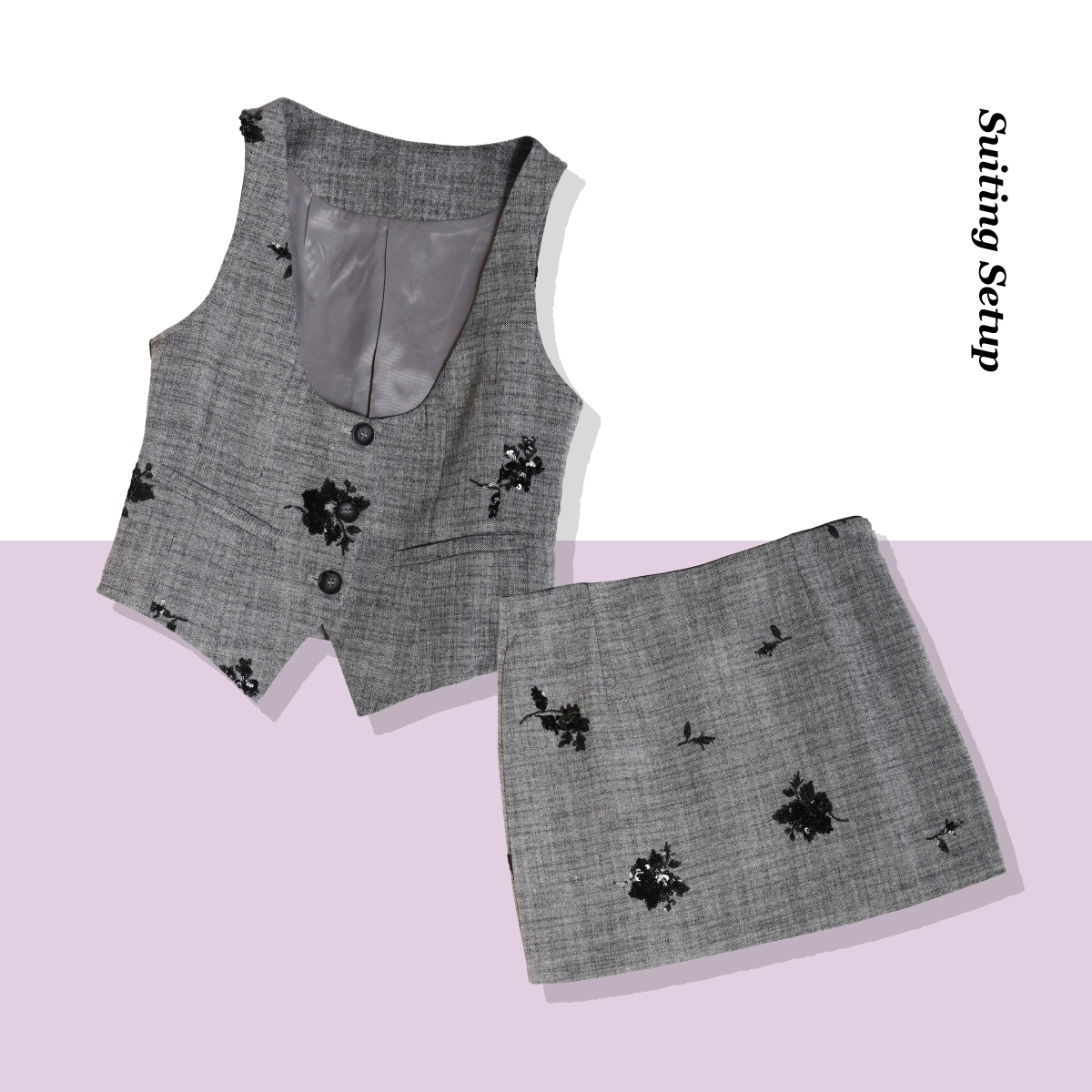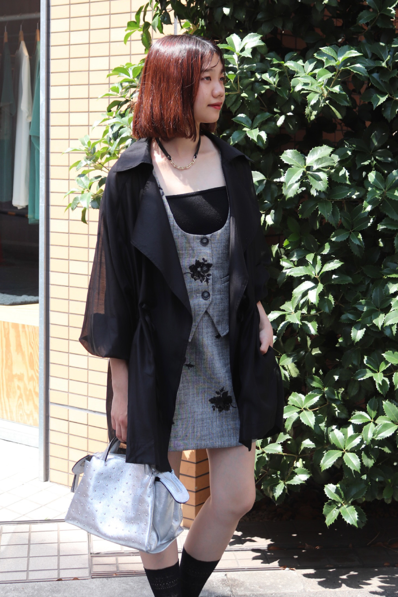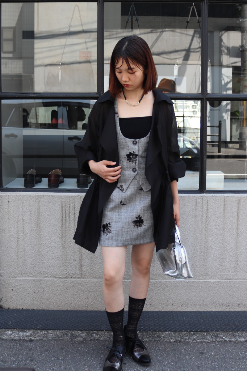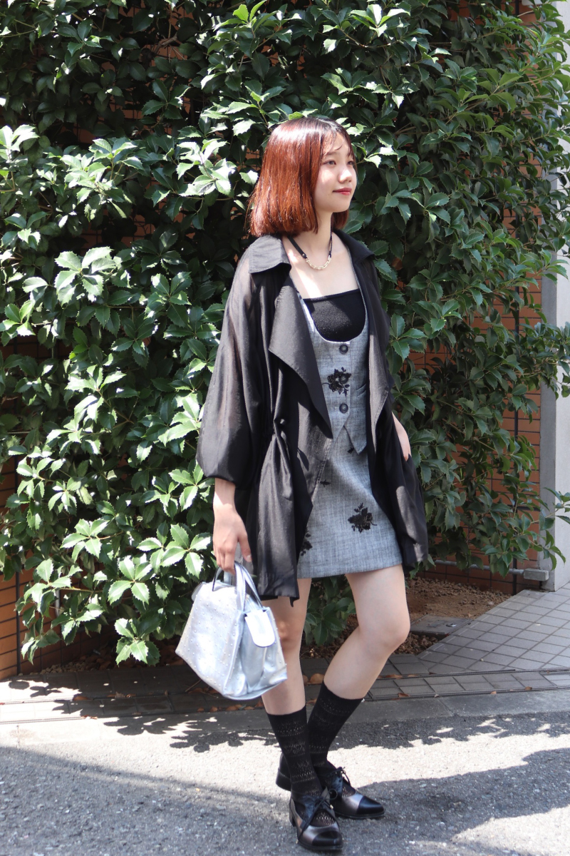 フェミニンとハンサムを両立するセットアップ。レイヤードしやすいデザイン性と、辛口要素の無彩色。コーデのアレンジの幅を広げてくれる利便性も兼任。