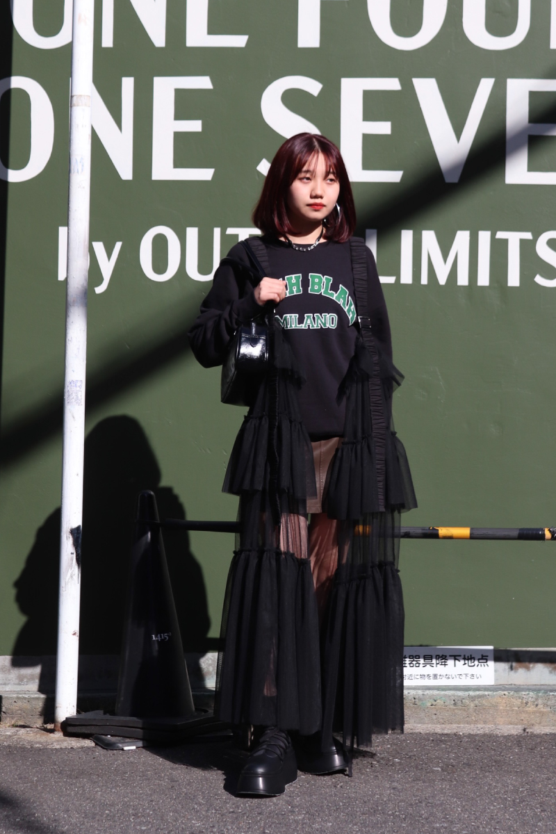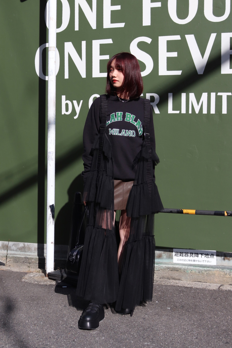 STYLING POINT春のシグネチャーアイテムでもあるチュールワンピースでスタイリング。タイプの異なるアイテム、異素材感を楽しむレイヤードコーデ。スタイルアップ効果も期待!