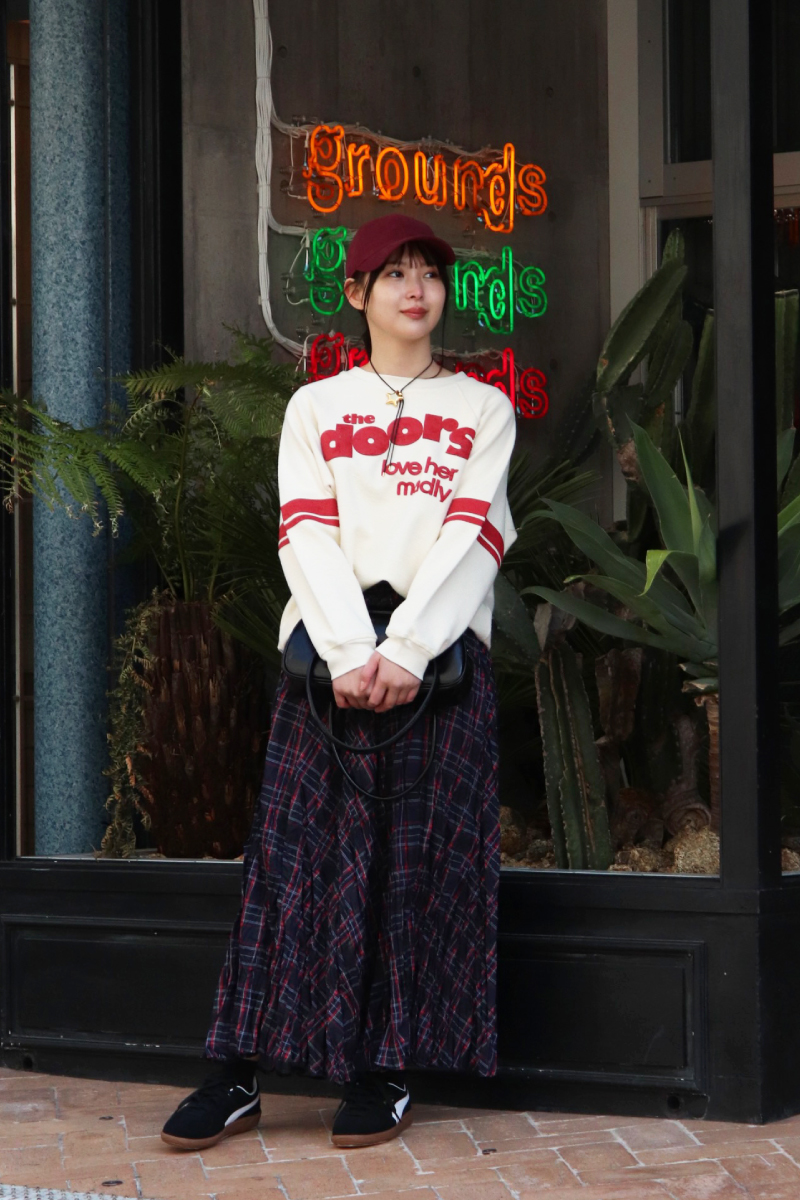 STYLING POINTDAYDREAMER特有の風合いの華奢に見せてくれる、ゆるっとサイズのゲームスウェット。個性のあるアイテム同士で合わせてCOQULEらしいコーデに!