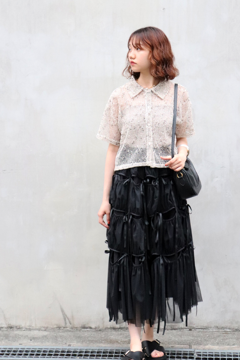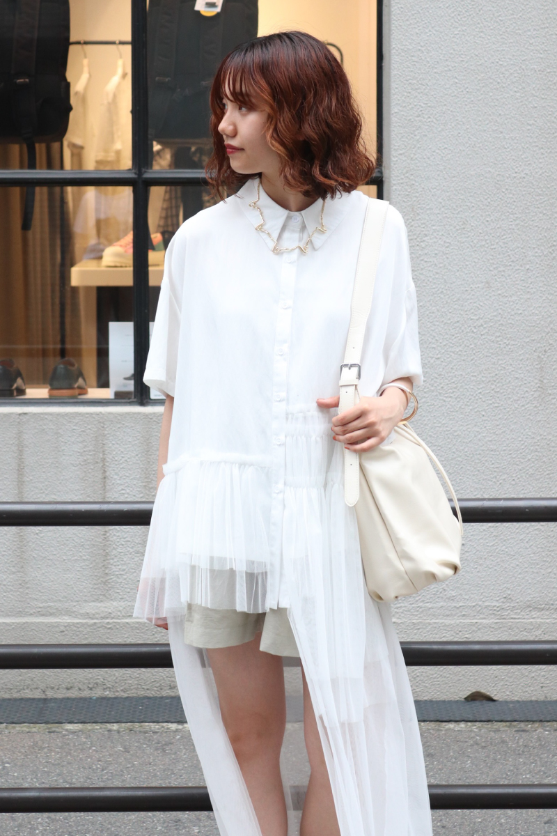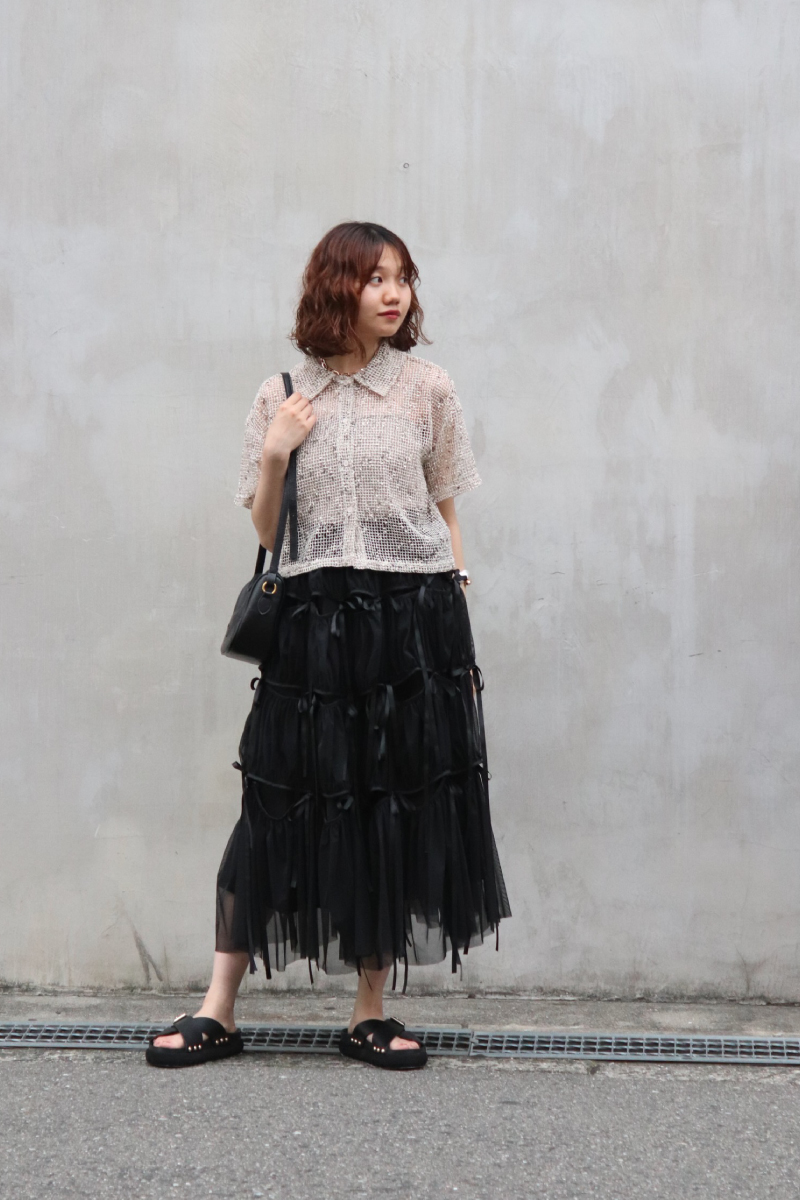 STYLING POINT動きのあるチュールが無地のシンプルさを払拭。通常のワントーンコーデでもシルエットやユレ感のある風合いが表情豊かに装いに華やかさをプラスしてくれます。