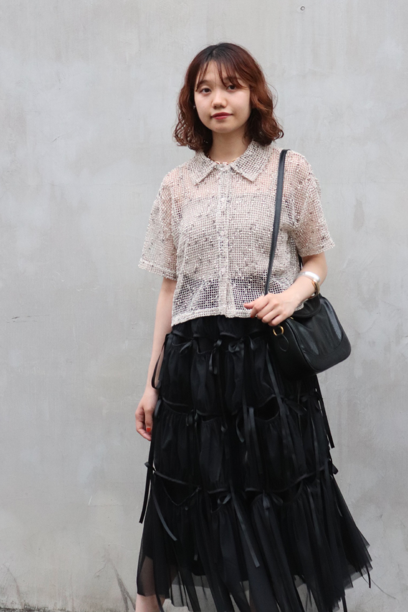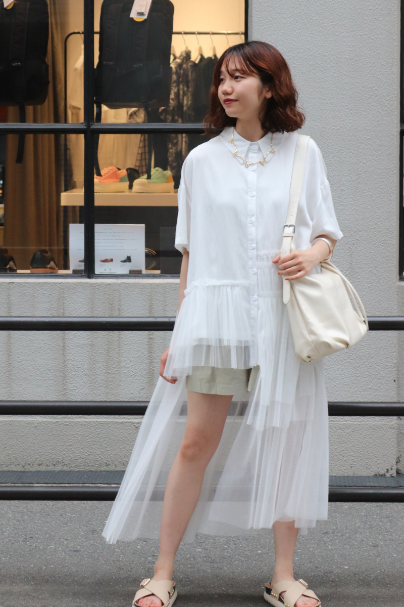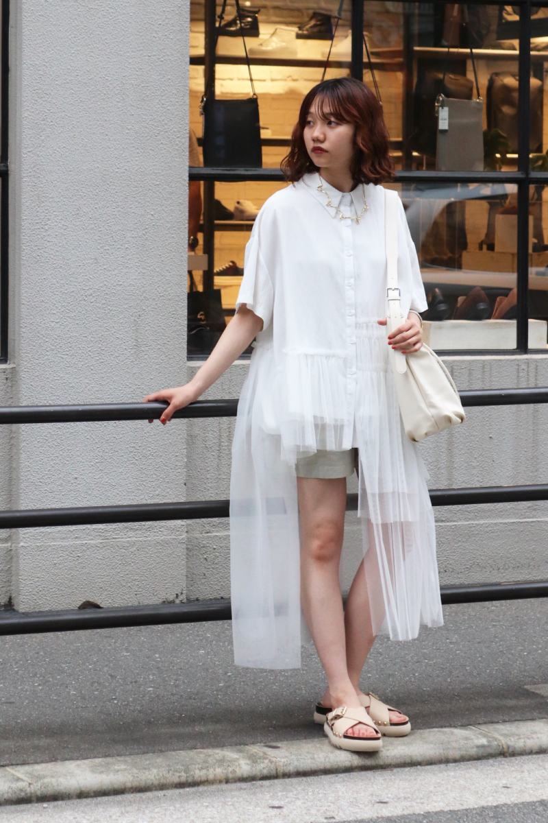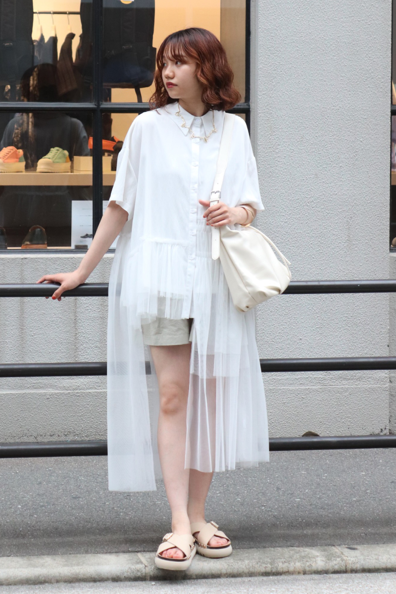 STYLING POINT動きのあるチュールが無地のシンプルさを払拭。通常のワントーンコーデでもシルエットやユレ感のある風合いが表情豊かに装いに華やかさをプラスしてくれます。