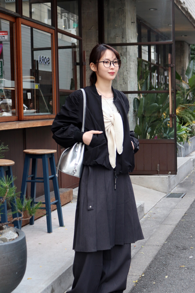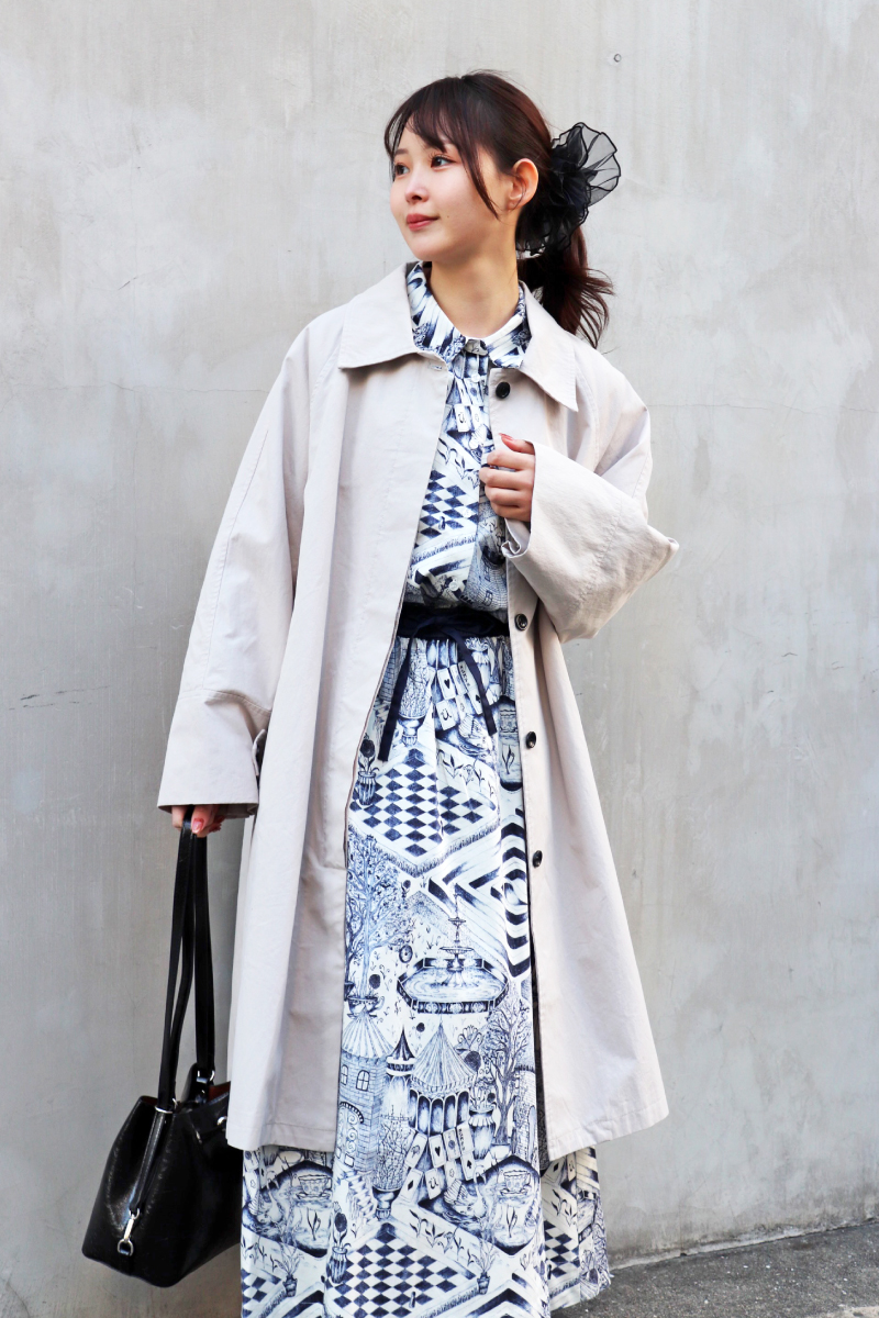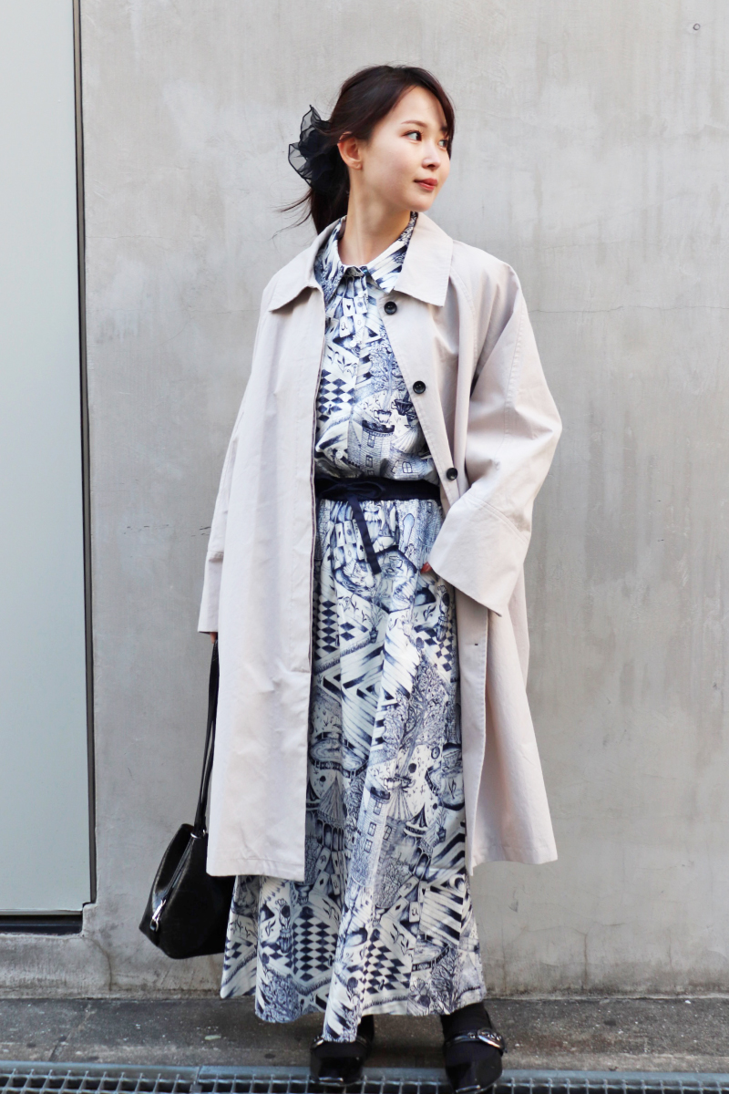 STYLING POINTキレイ見えを叶えてくれるセットアップ。ワンピのようにも着れるセットにマニッシュなコートをON。淡いトーン同士の柔らかさがプラスされ今に似合うクリーンな印象に。