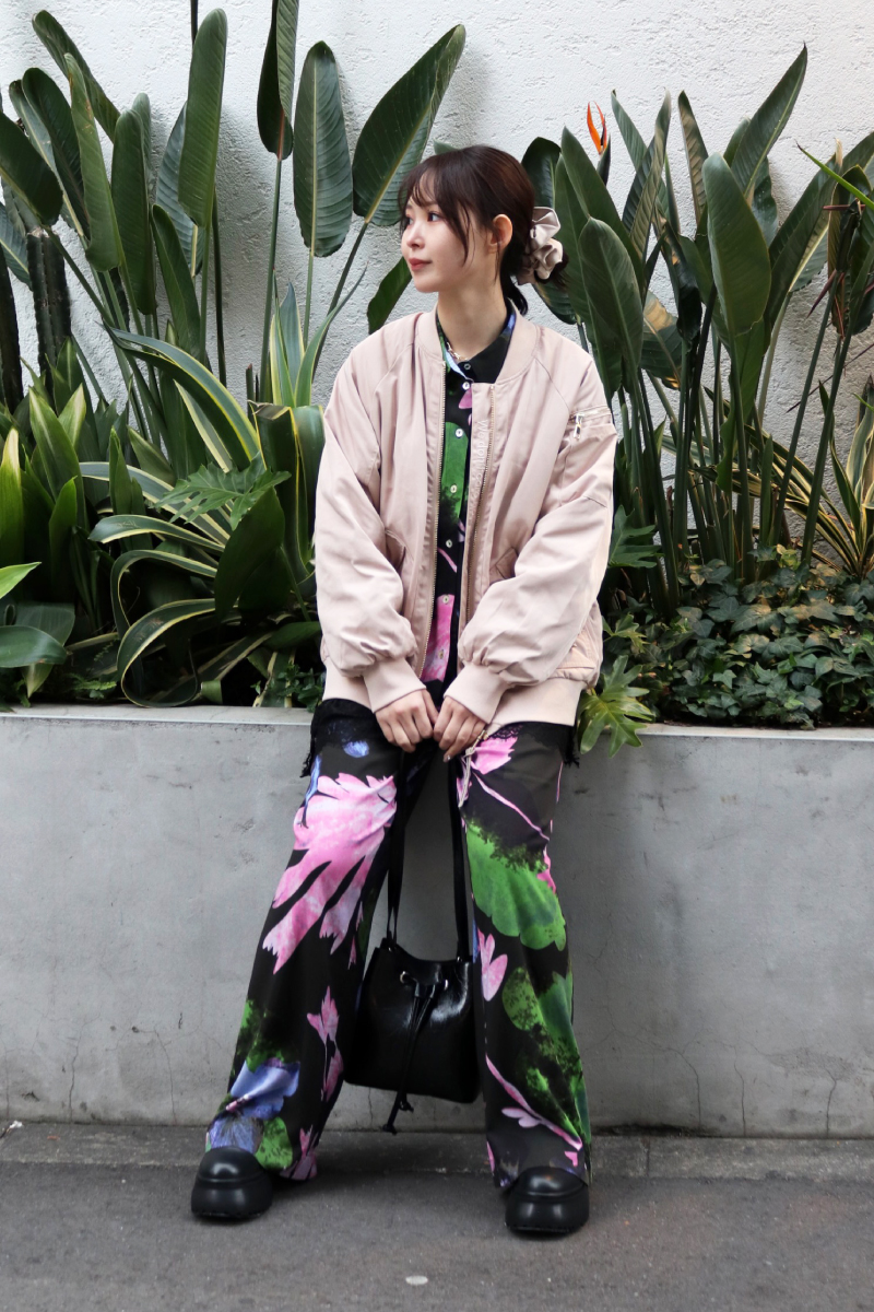 STYLING POINT鮮やかで存在感たっぷりのセットアップ。色調の合うブルゾンを羽織るとさらに絵になるコーディネートに↑↑