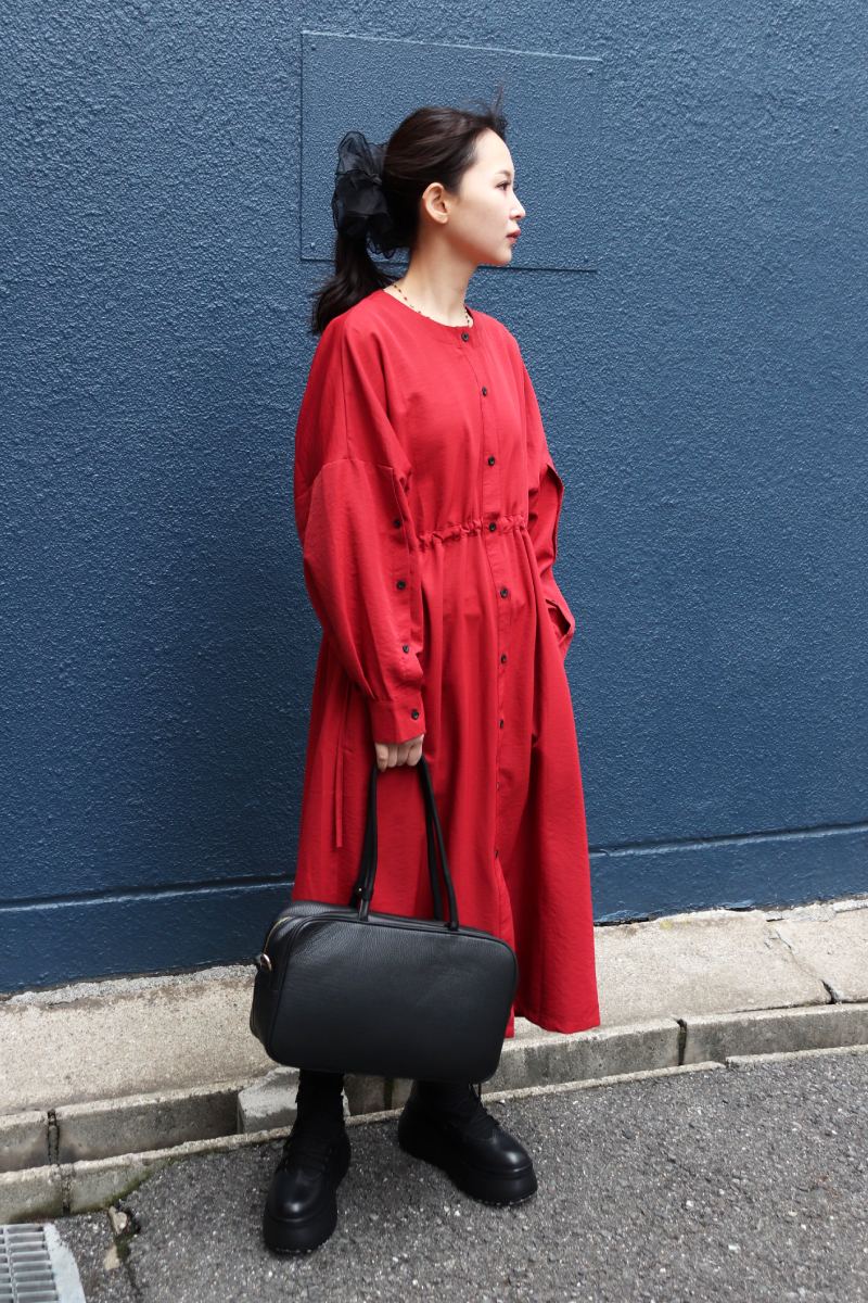 STYLING POINT1枚でも鮮度の上がる赤のワンピース。体をキレイに魅せてくれる切り替えと落ち感。コートの中でも着映えるデザイン。