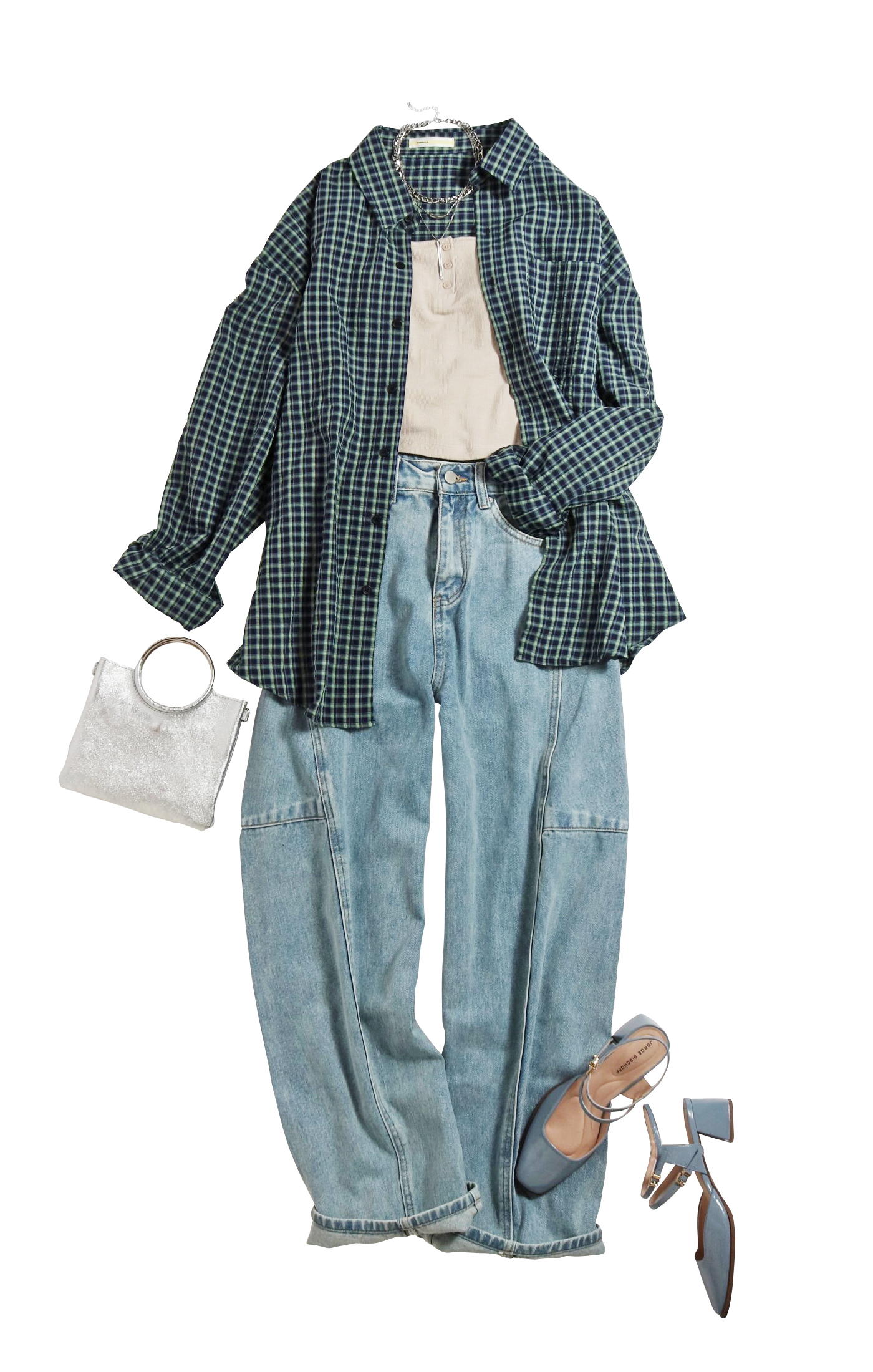 ざっくりと羽織ったビッグシャツの開放感。さっぱりとしたタンクの印象の涼しげでスッキリとした見た目は保ったまま、サマになるボリューム感を出したコーデ。風をはらむ躍動感ある姿も印象的。