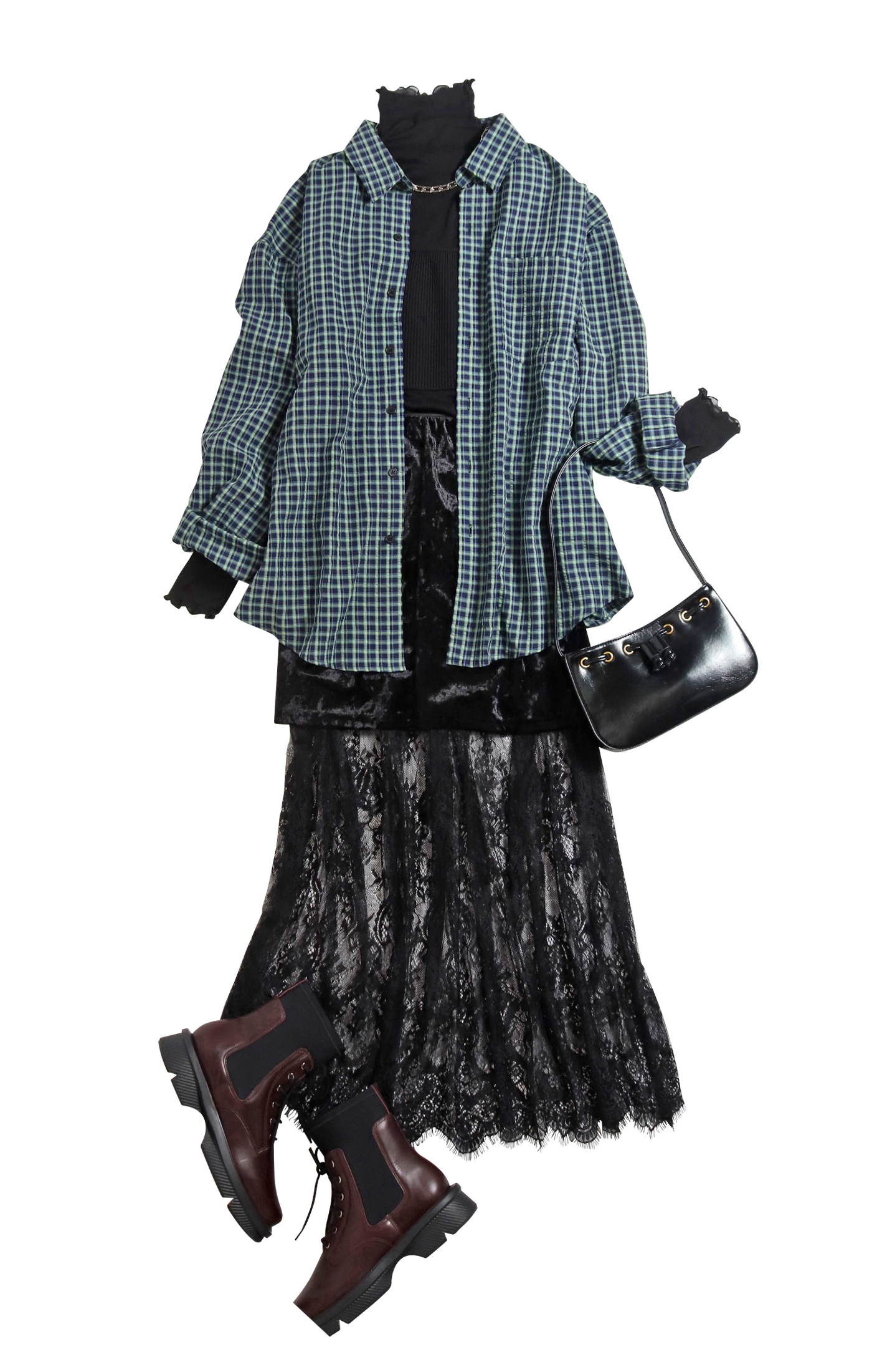 気温が不安定な時は秋の色合いで統一感を持たせる。透け感のあるシアーやレースのセンシュアルな装いをメンズテイストなチャックシャツでハズしてみるのも◎ヘルシーな女性らしさを演出してくれます。