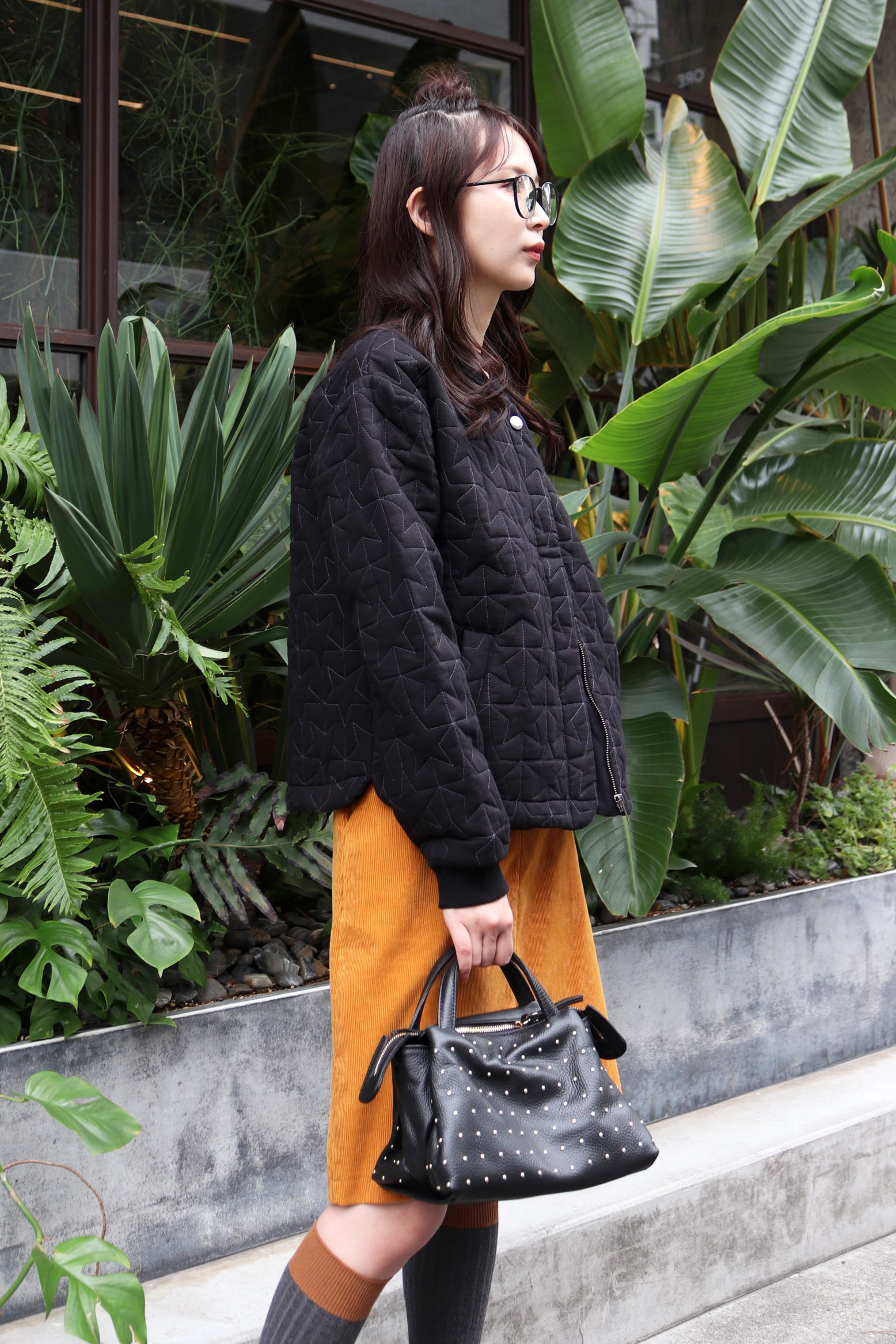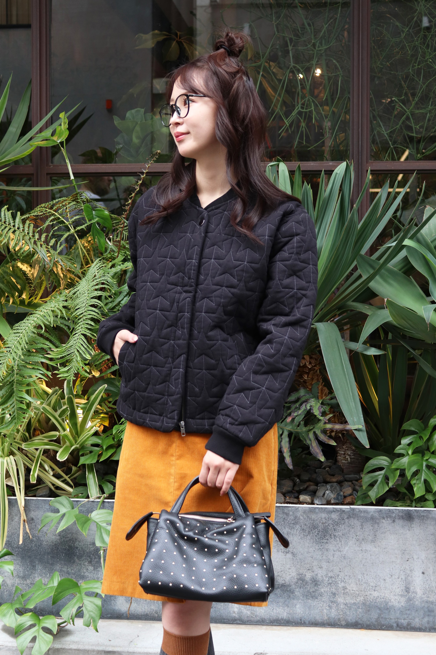 STYLING POINT星柄のキルティング刺繍が絶妙な甘辛バランスのブルゾン。ブルゾンとコーデュロイでレトロな要素を掛け合わせてオールドスクールのような可愛げに仕上げたコーデ。
