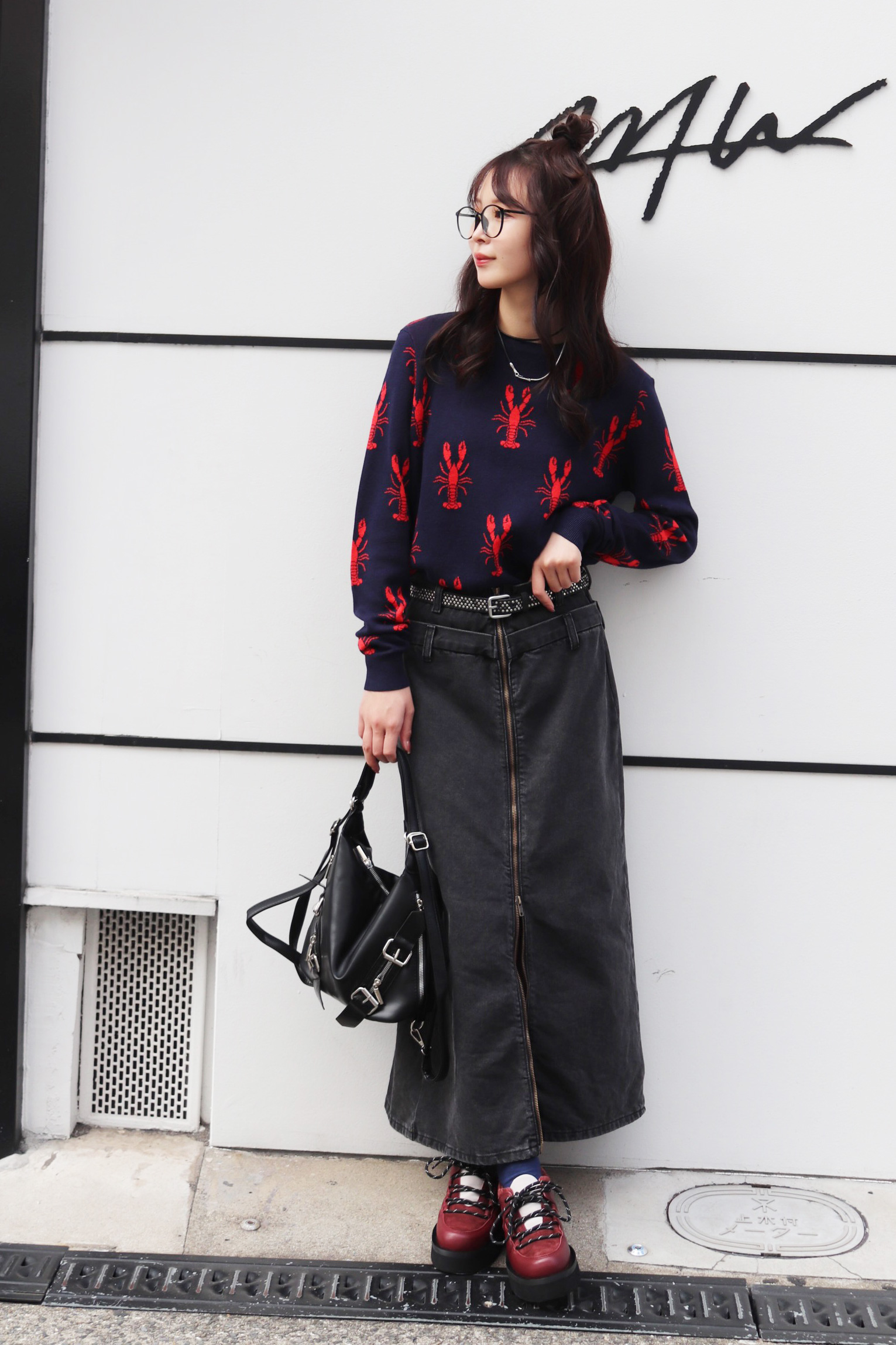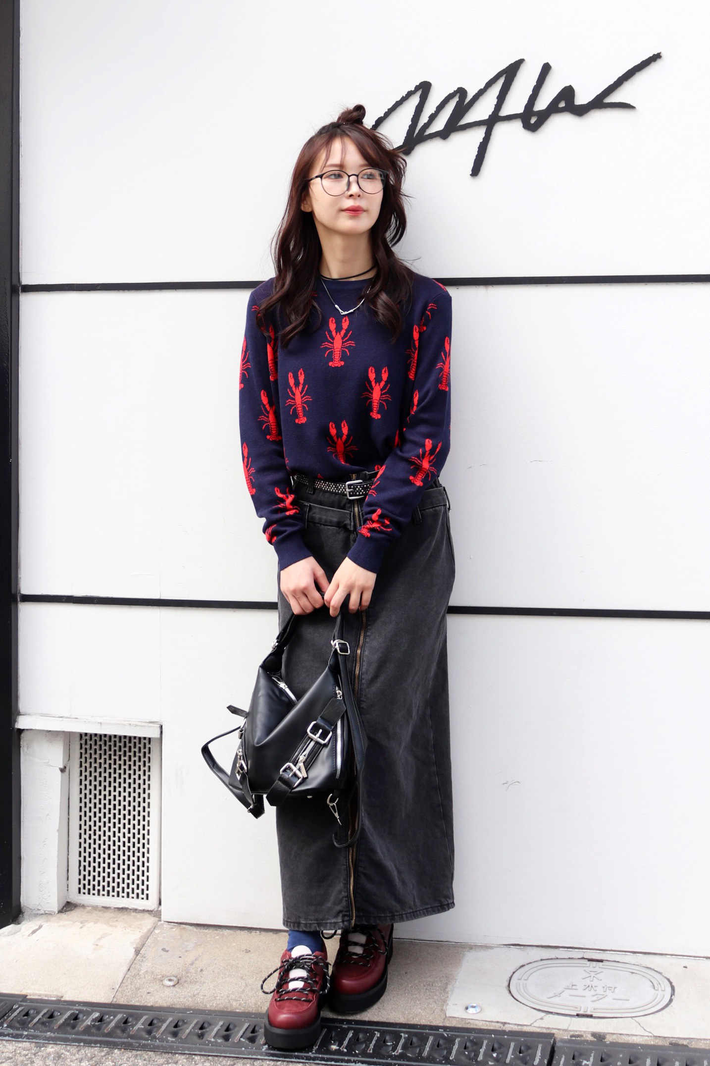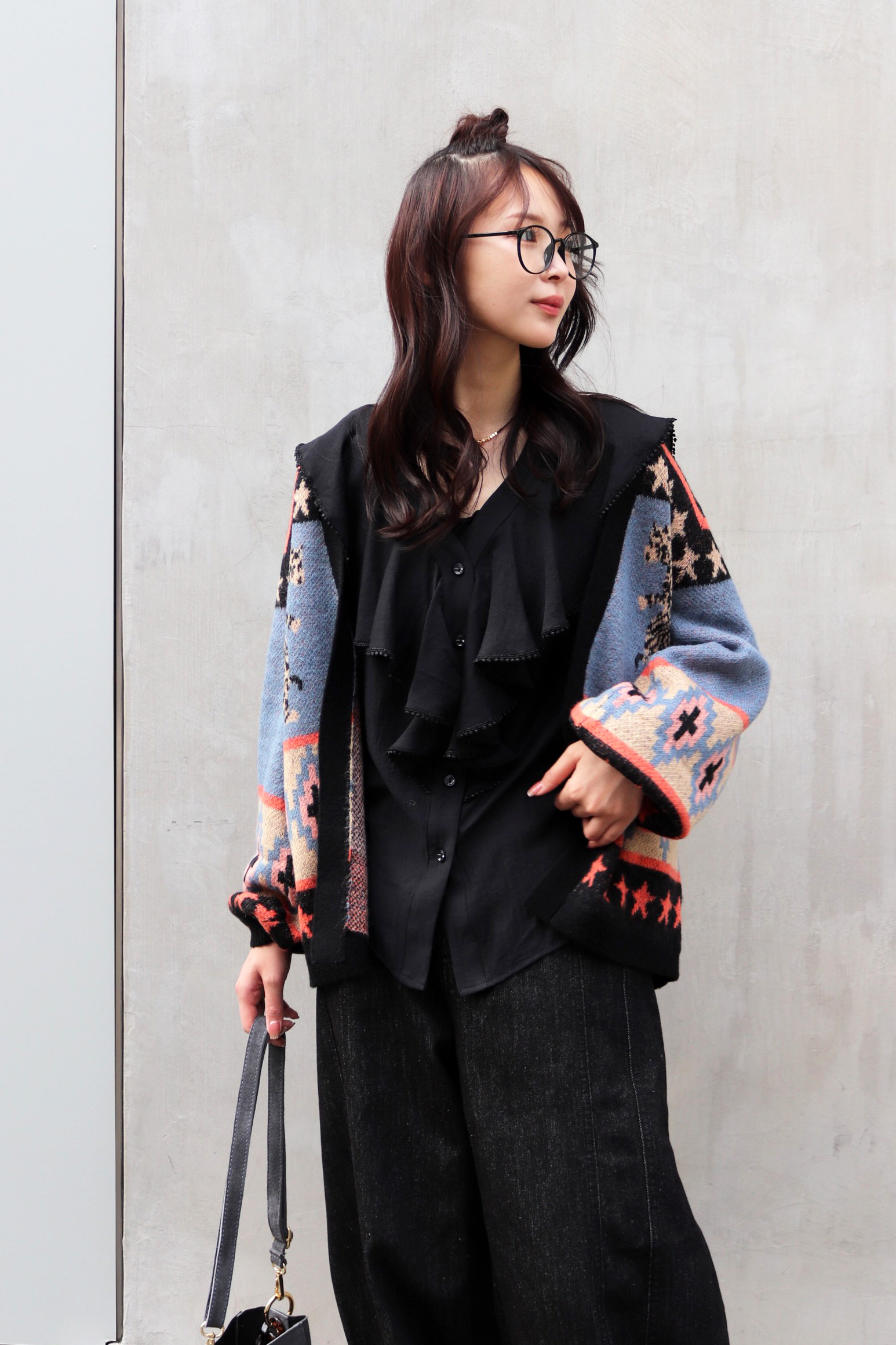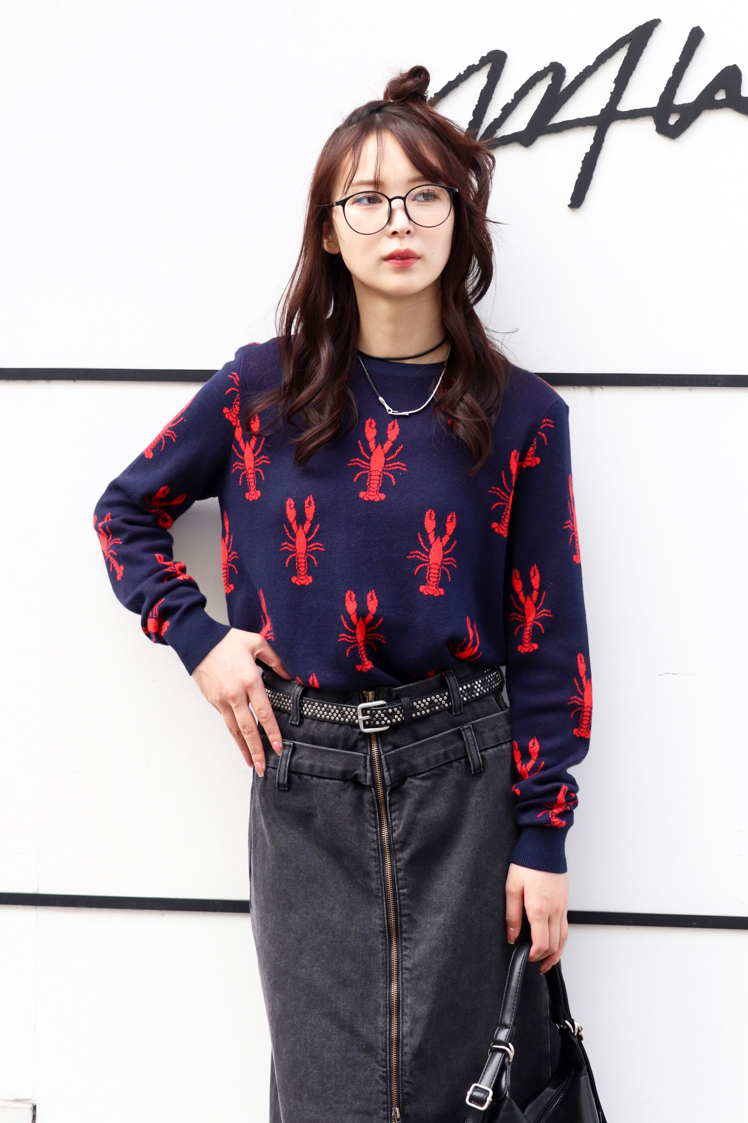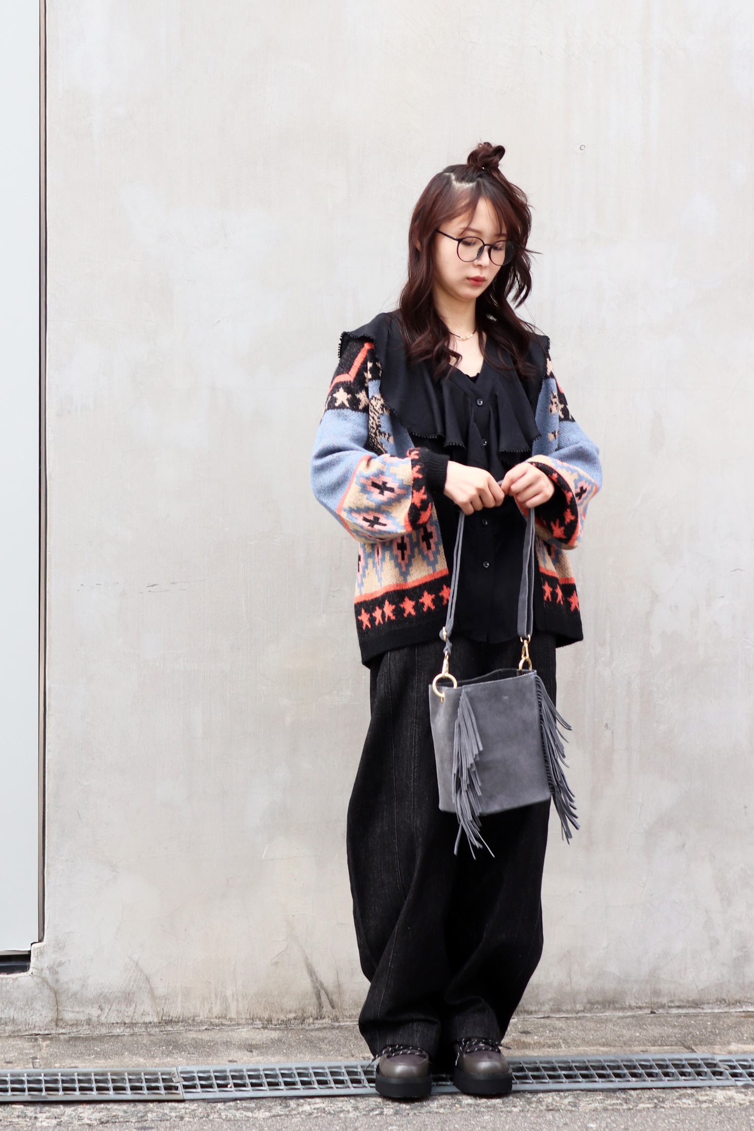 STYLING POINT愛嬌のあるネコが主役級のニットにバルーンシルエットのデニムをチョイス。ニットのテンションに合わせて着方もカジュアルに振り、個性を存分に発揮。