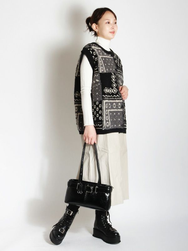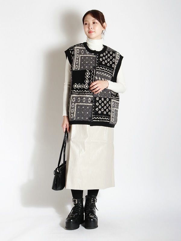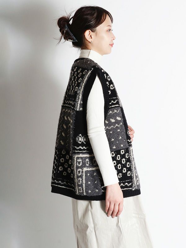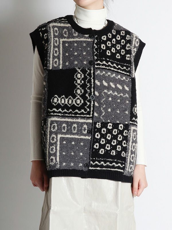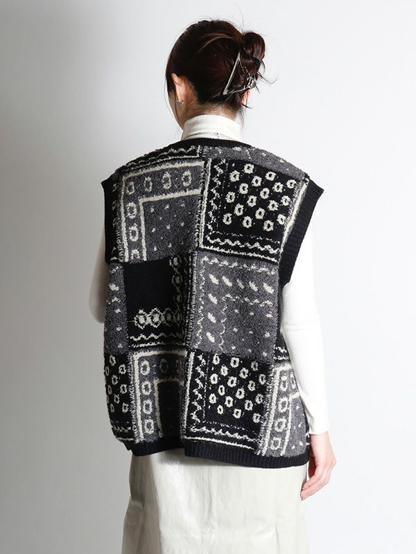 パッチワークジャガードニットベスト