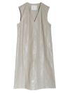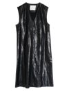 スリットネックレザー調ワンピース