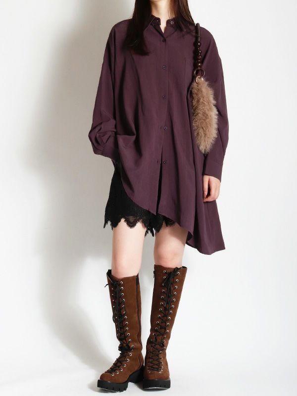 裾バルーンデザインシャツワンピース