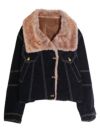 レザー調襟ポケットデニムブルゾン