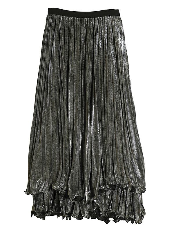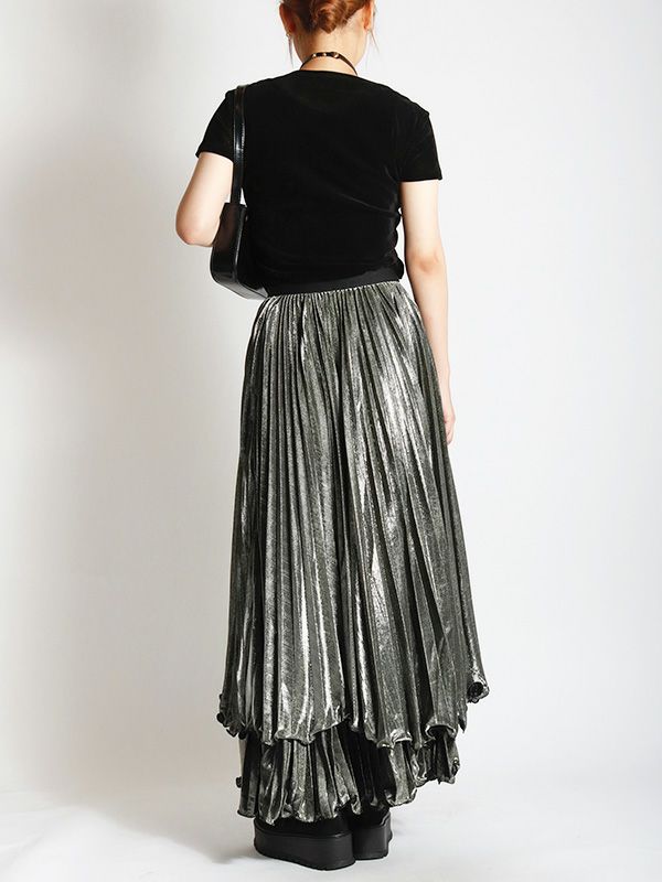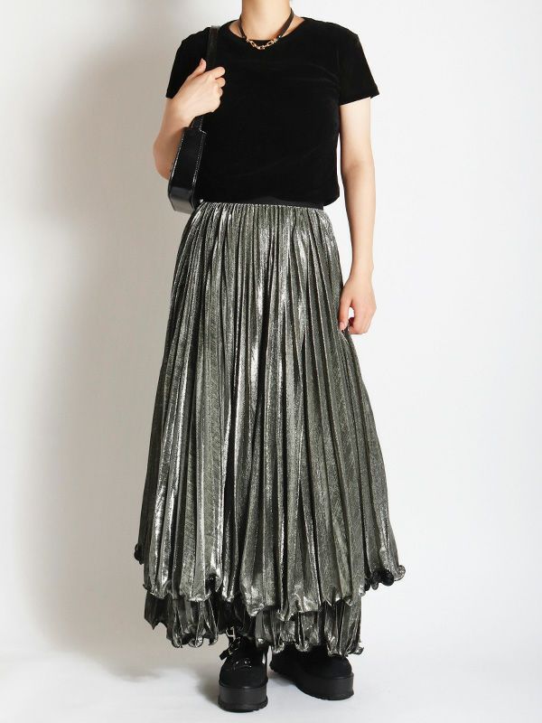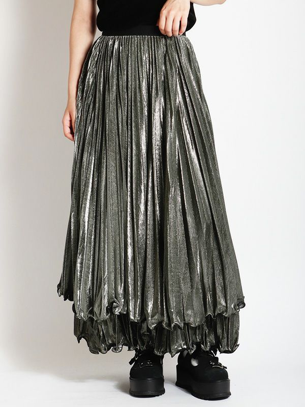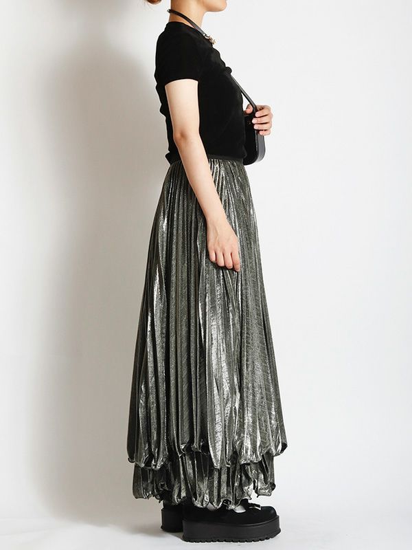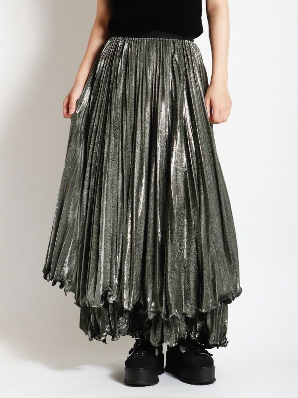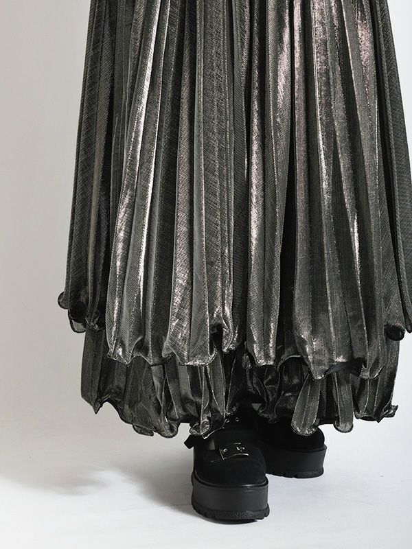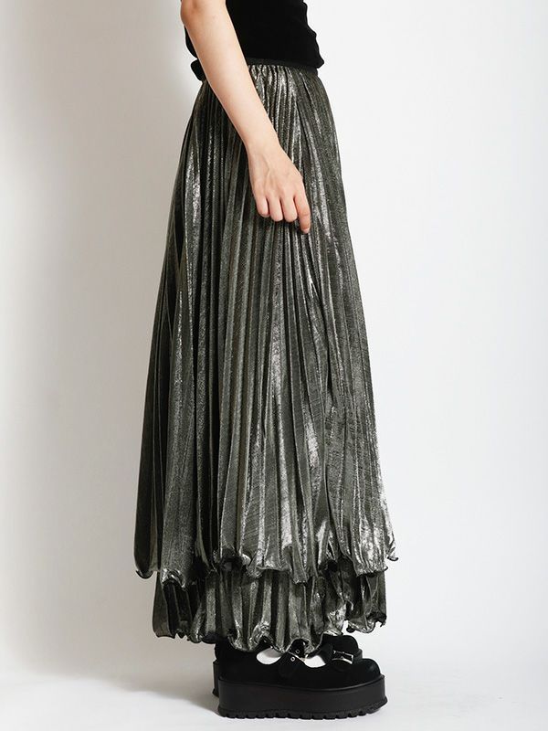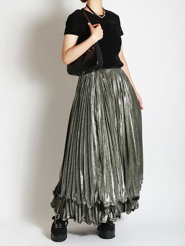 メタリックティアードプリーツスカート