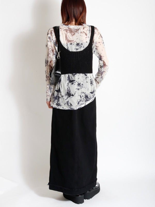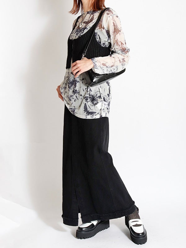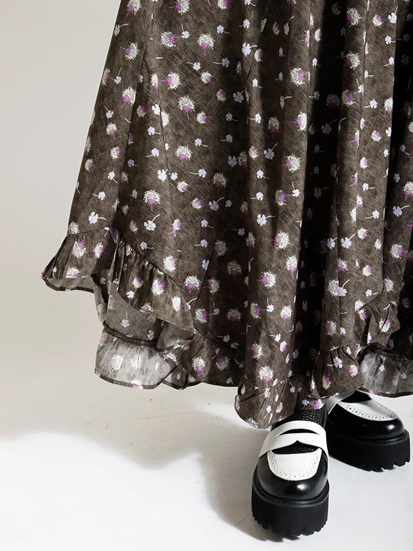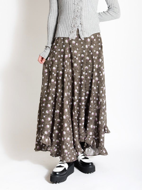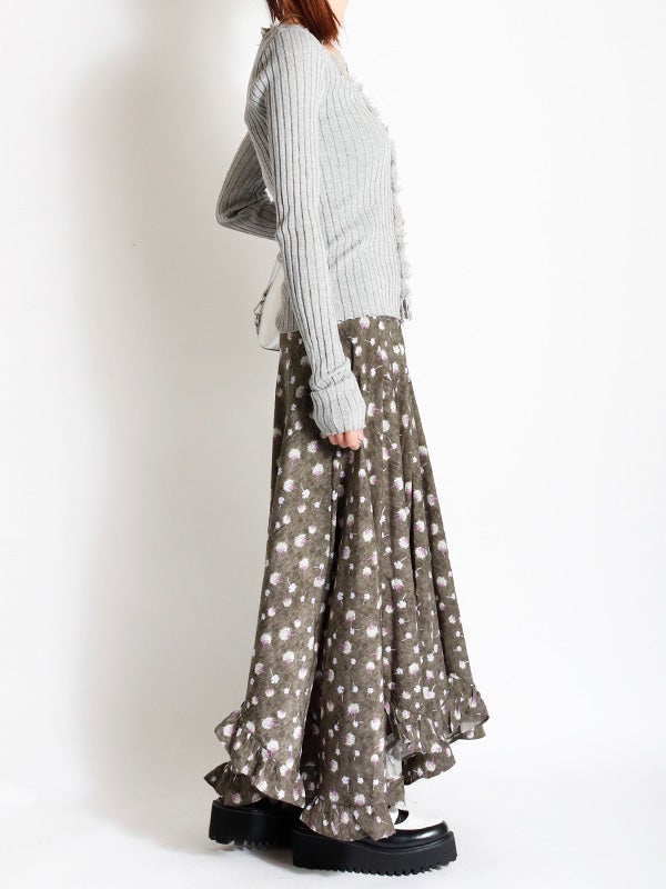 アシンメトリー花柄ロングスカート