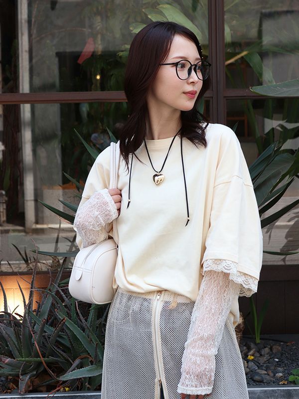 レースレイヤードロングスリーブTシャツ