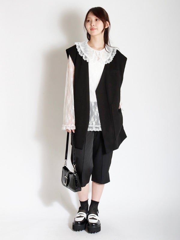 ビッグカラーレースフリルブラウス